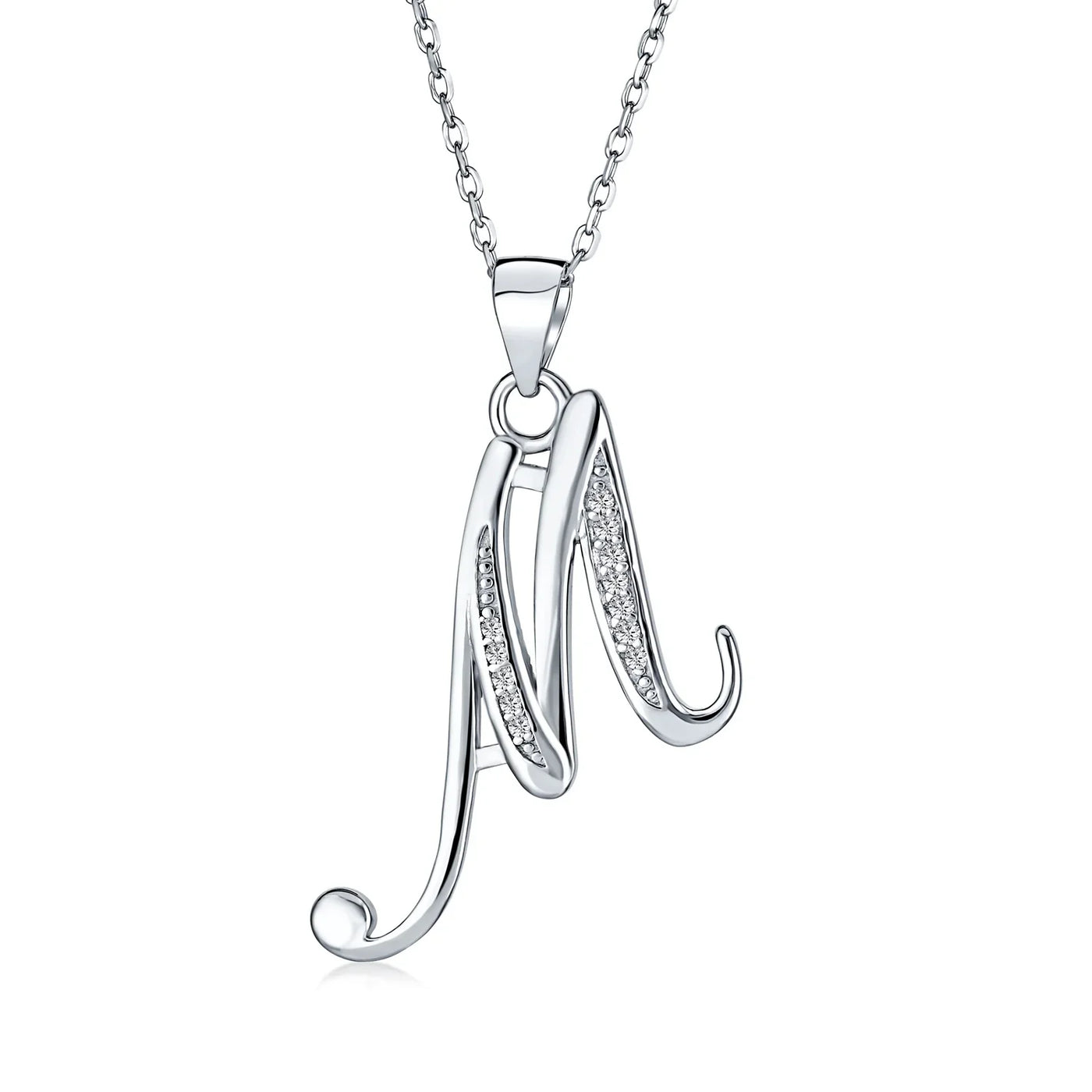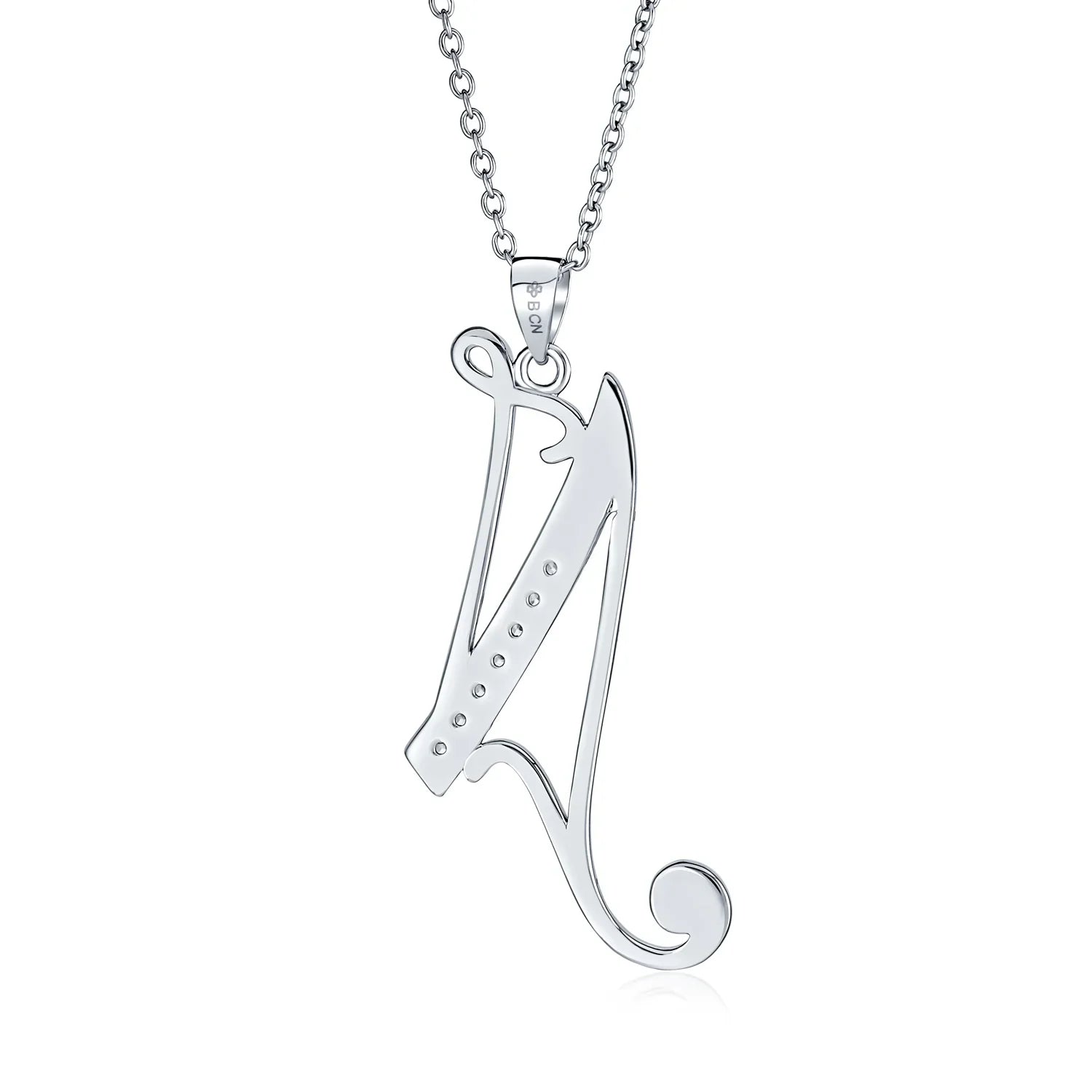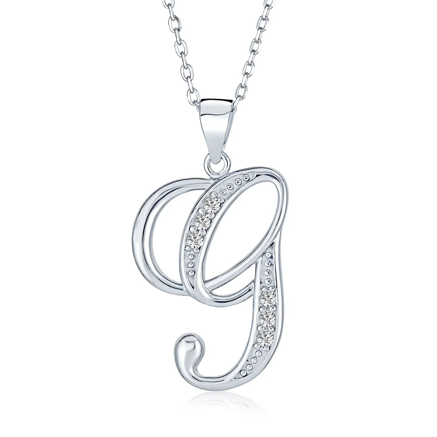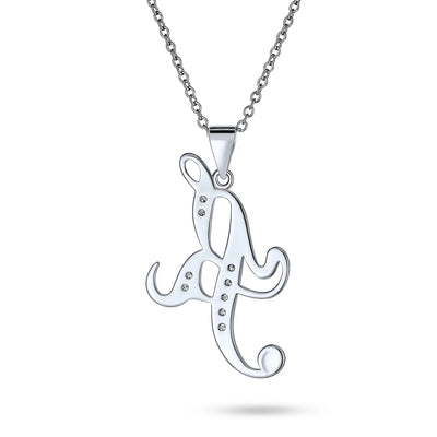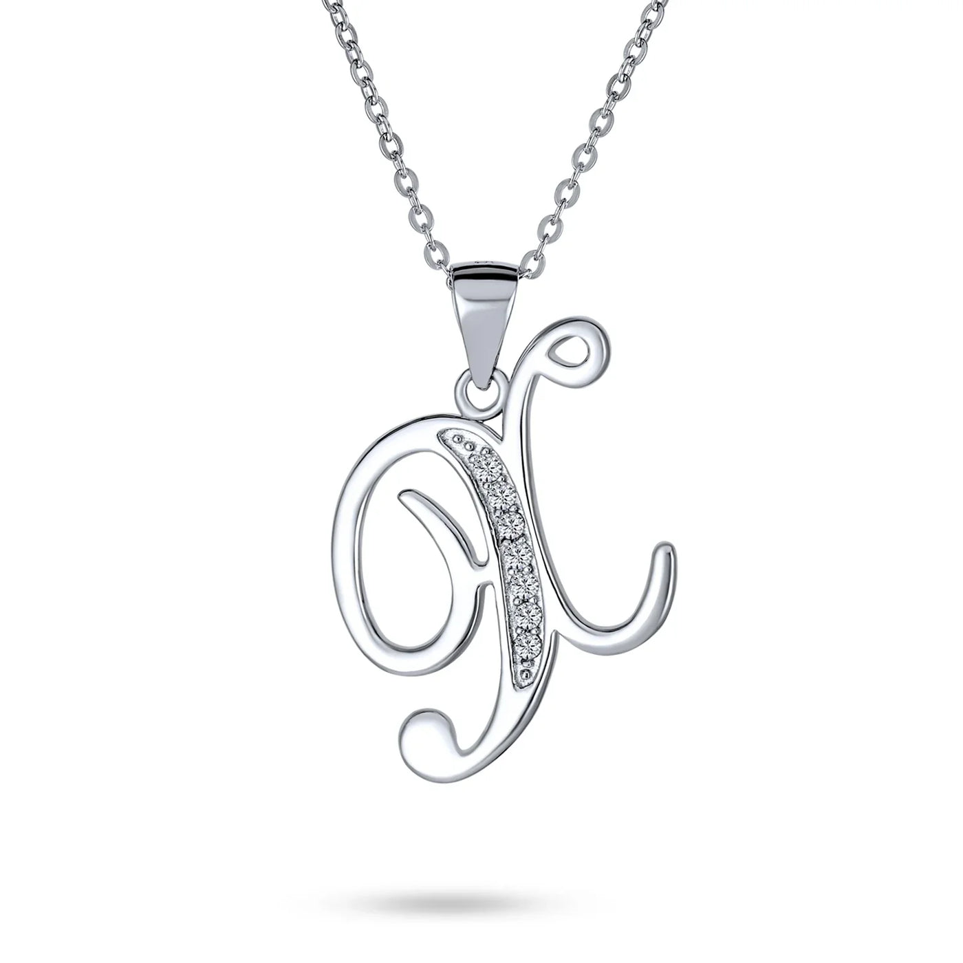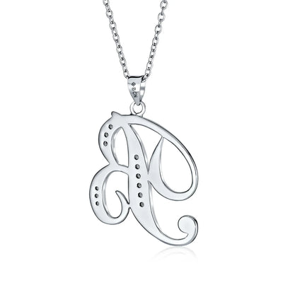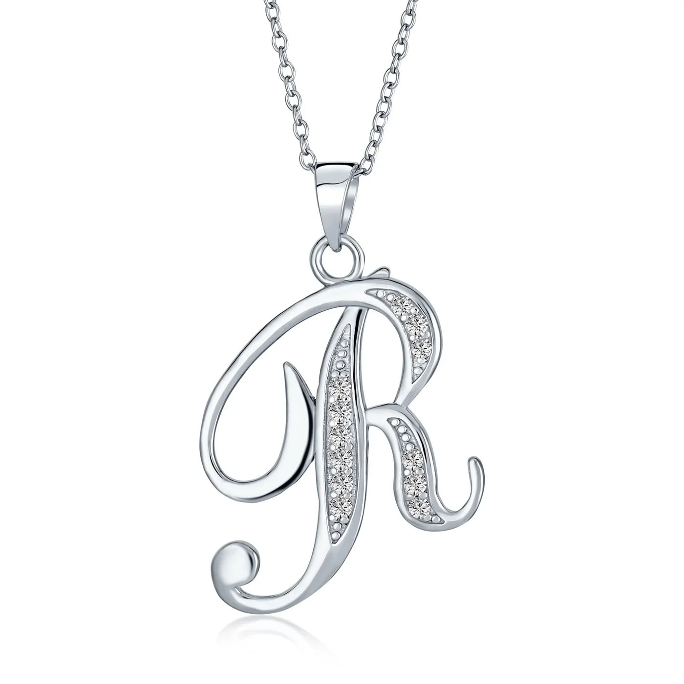 - This .925 Sterling Silver rhodium plated initial pendant sparkles with pave CZ stones, perfect for any occasion. Wear it casually or formally. Pair with other alphabet letters for a unique touch. Comes with a 16-inch chain, making it dangle beautifully. Ideal for birthdays, Mother's Day, or any special event. A stunning addition to any outfit and jewelry collection.