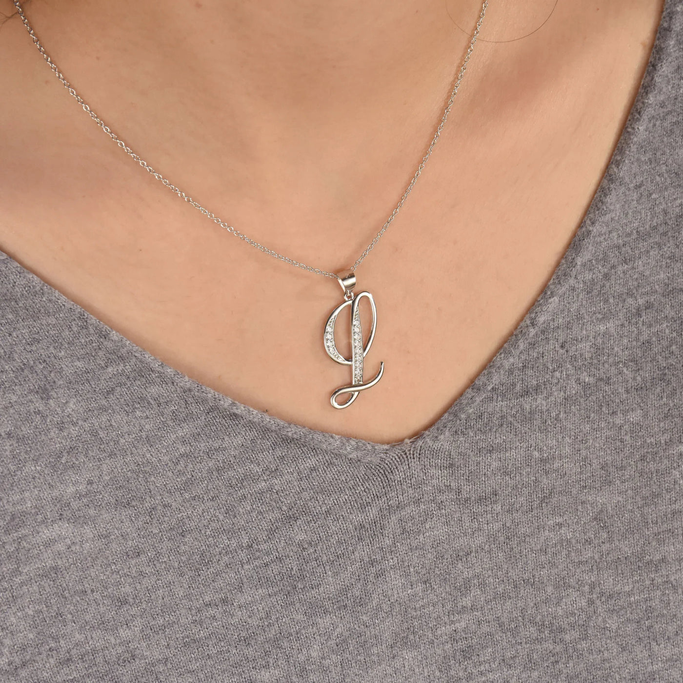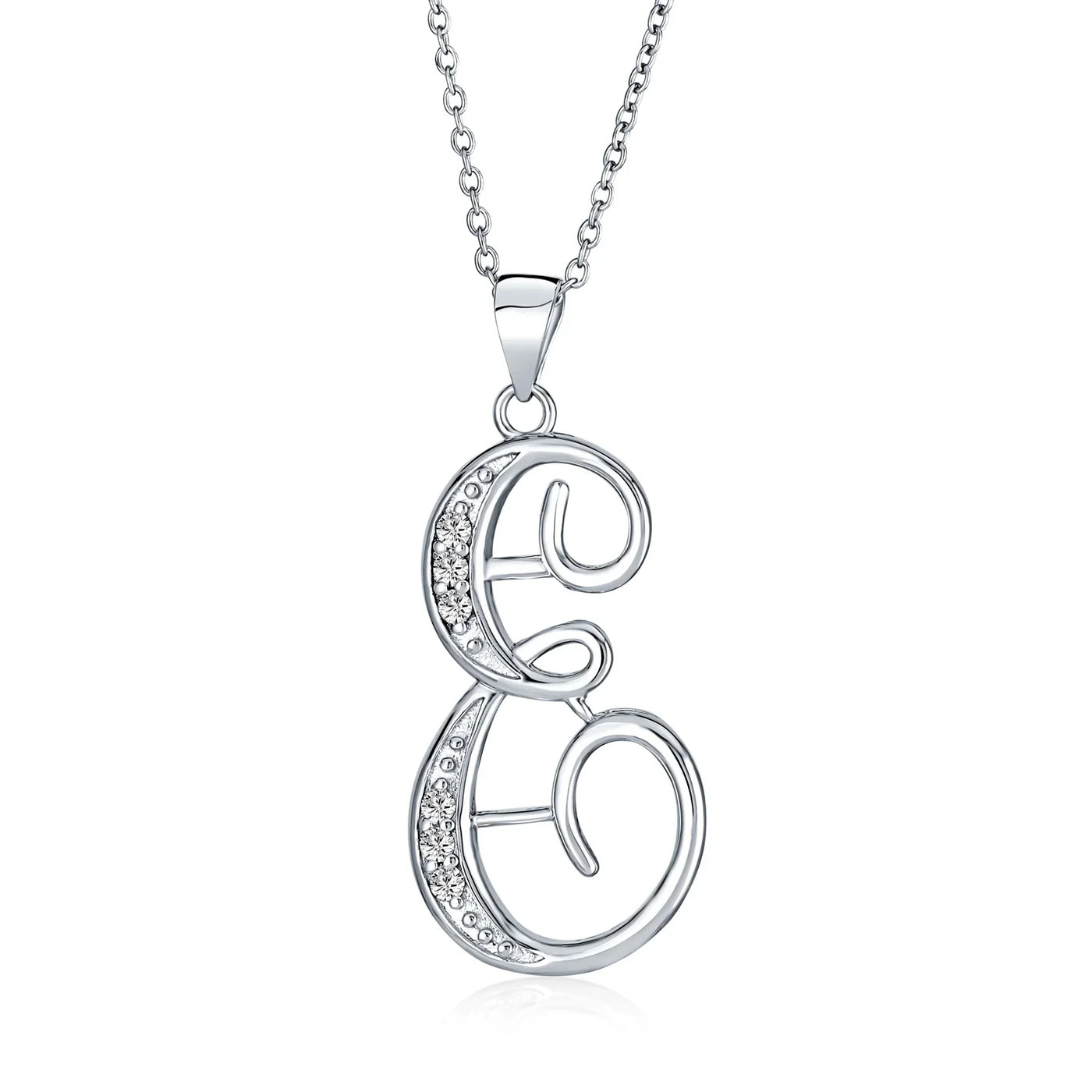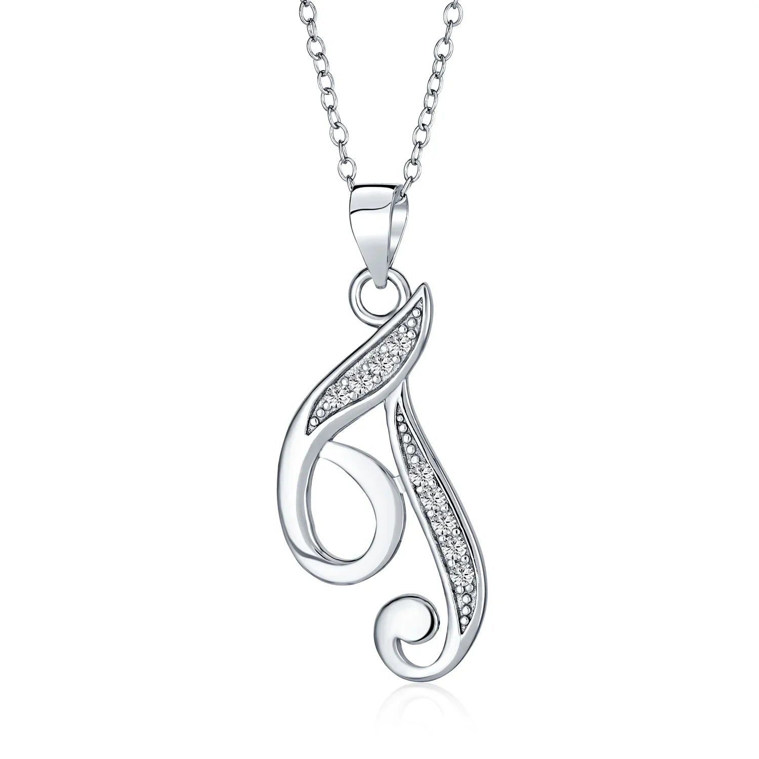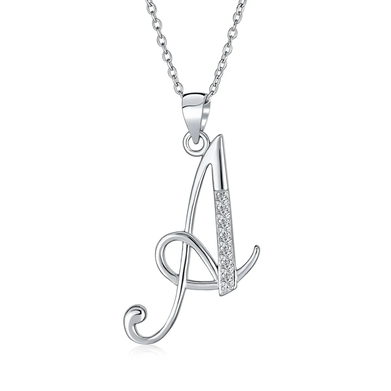 - This .925 Sterling Silver rhodium plated initial pendant sparkles with pave CZ stones, perfect for any occasion. Wear it casually or formally. Pair with other alphabet letters for a unique touch. Comes with a 16-inch chain, making it dangle beautifully. Ideal for birthdays, Mother's Day, or any special event. A stunning addition to any outfit and jewelry collection.