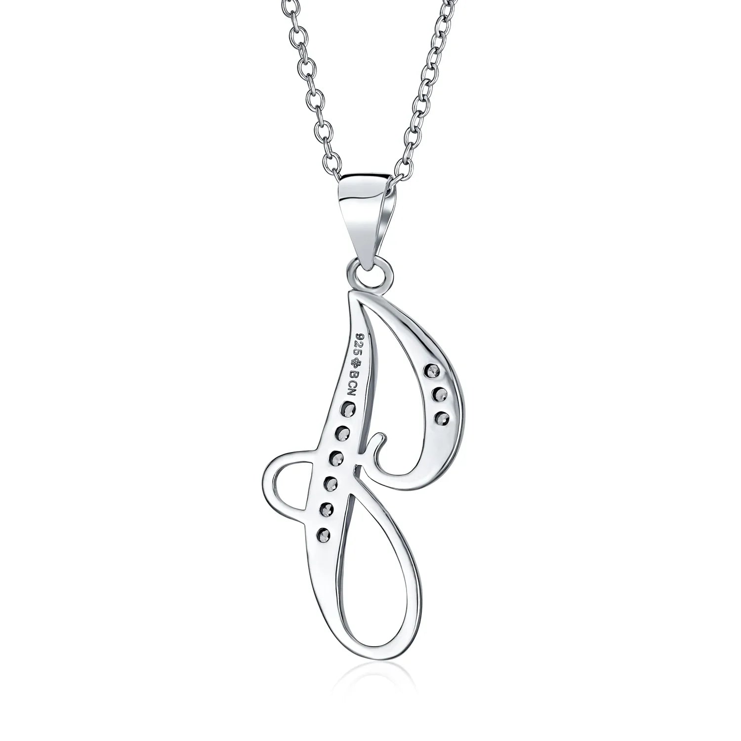 - BEAUTIFUL PERSONAL STYLE - Have fun personalizing your jewelry collection with this elegantly designed initial pendant necklace. This chic alphabet themed necklace features a letter "B" pendant rendered in a cursive font adorned with shimmering czs.