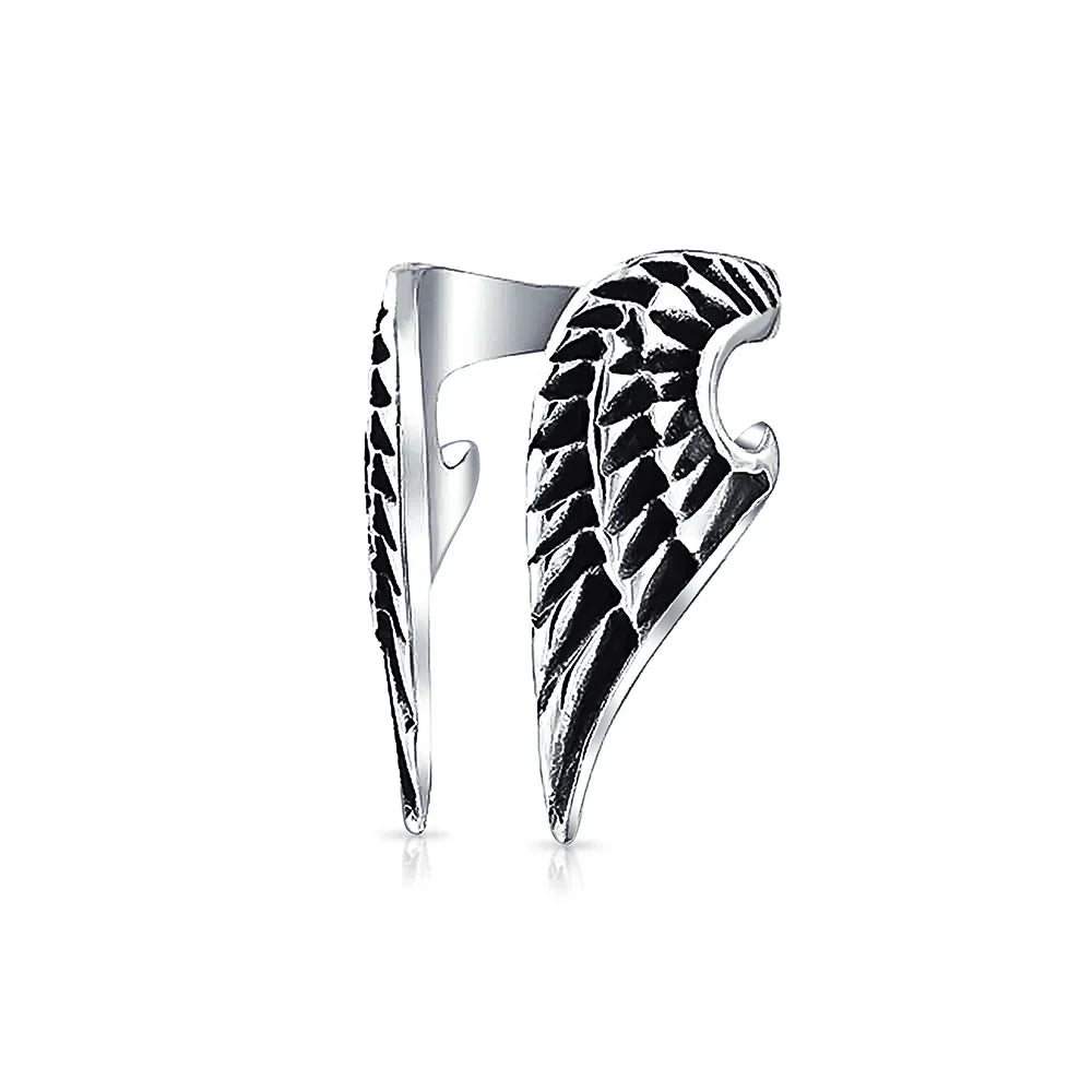 • Enhance your style with a touch of angelic charm with this exquisite stainless steel single ear cuff. Featuring a unique guardian angel feather wing motif that delicately hugs your ear cartilage, this antique-style accessory is perfect for non-pierced ears.