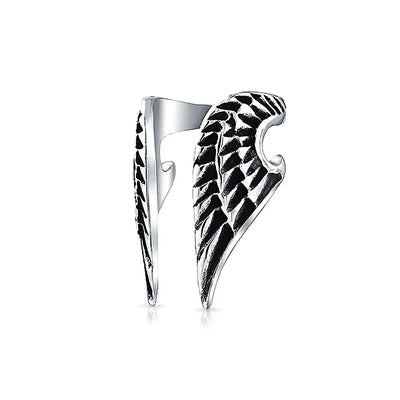 Guardian Angel Wing Ear Cuff Cartilage Clip Earring Black Oxidized Steel