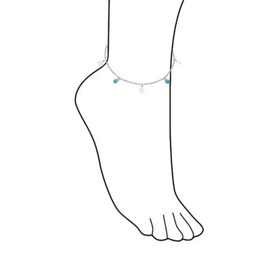 Dangle Aqua Blue Cats Eye Bead Anklet Ankle Bracelet Star Charms Sterling Silver - Bling Jewelry