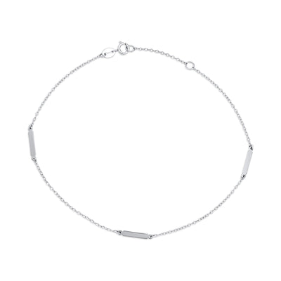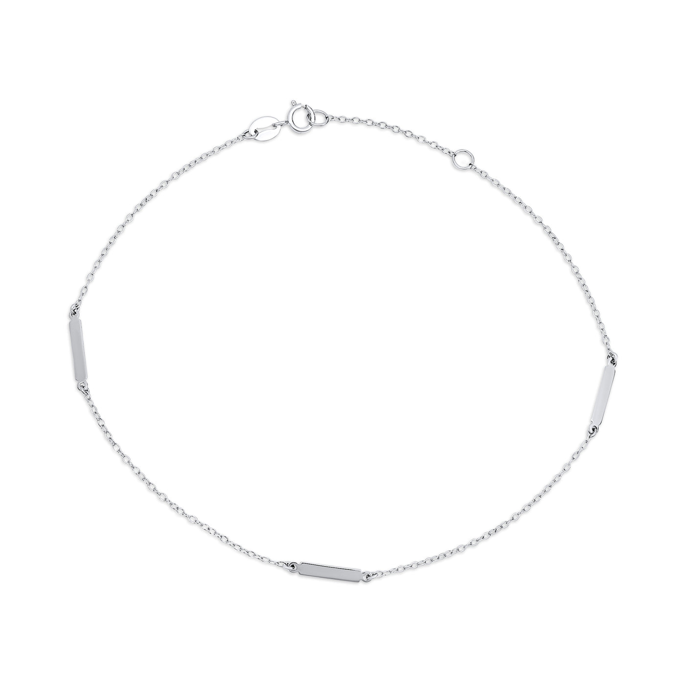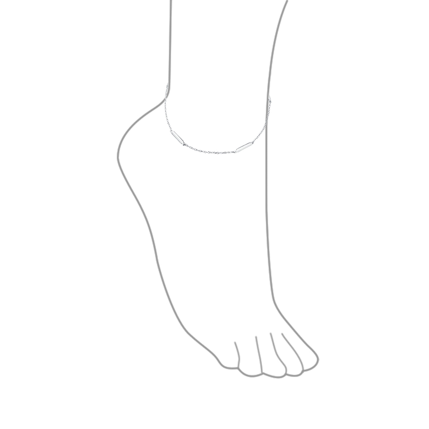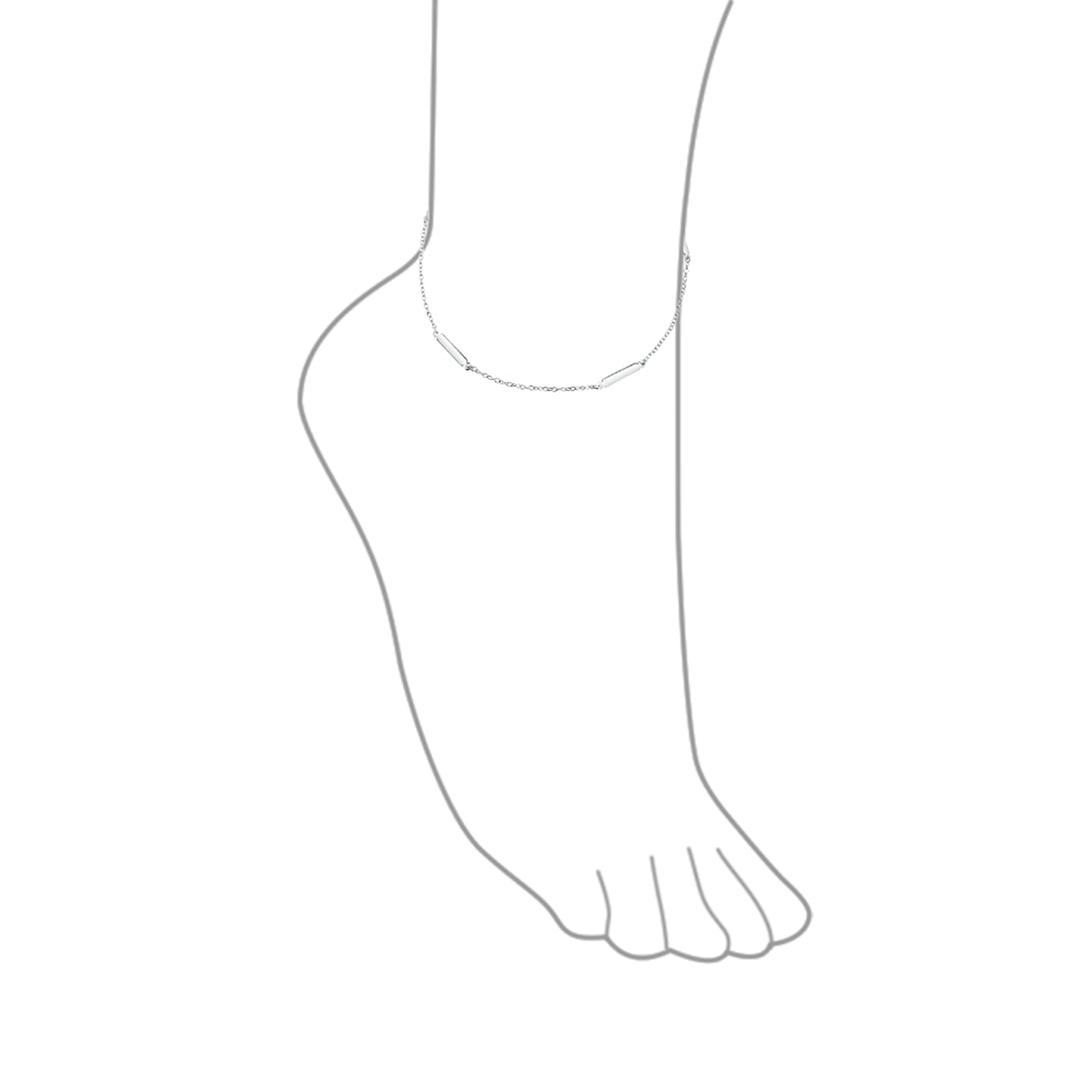 - For a feminine and modern look, our sterling silver anklet is a must. Four electro coated sterling silver thin rectangular bars are set along a dainty rolo chain with a 1 inch extender. Layer it with other sterling silver Ankle Bracelets for a touch of shimmer. At this affordable price, shopping for summer jewelry has never been this guilt free. Material: 925 Sterling Silver, Electro coating, Measure: 9 inch L with 1 inch L Extender x 0.1 inch W, Weight: 1.08 Grams
