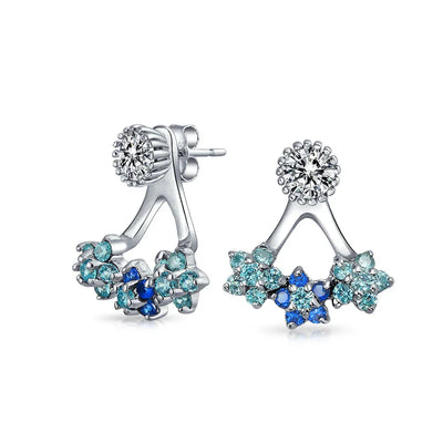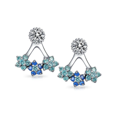 - Enhance your look with our stunning flower ear jackets. Crafted from 925 sterling silver, they feature simulated sapphire and Aquamarine flowers. The clear cubic zirconia stud is detachable for versatile wear. Perfect for both formal dresses and casual jeans with a t-shirt.
