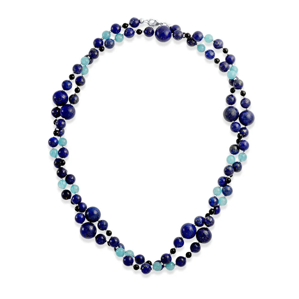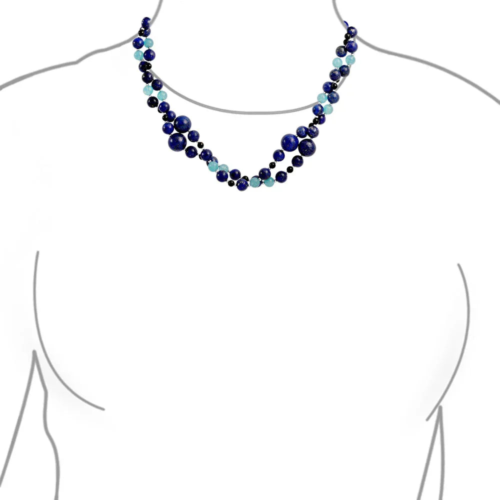 - Youll feel blue without this dyed lapis, dyed quartz and dyed onyx, modern layered necklace. Falling 40in, this rhodium plated, long necklace is a must have, versatile graduated accessory.