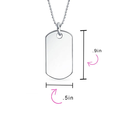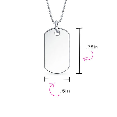- A classic .925 silver dog tag pendant never goes out of style. This timeless .925 Sterling Silver necklace is perfect for any occasion. Dog tag pendants are trendy and versatile, complementing various clothing styles. Personalize it for a memorable gift for yourself or a loved one. The high-polished shine adds elegance. Comes with a matching chain. Order your custom dog tag pendant today!
