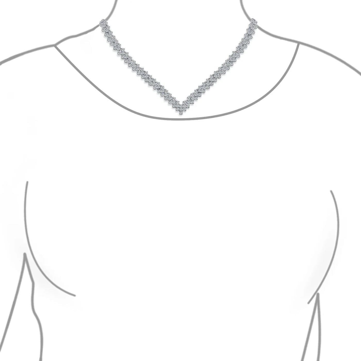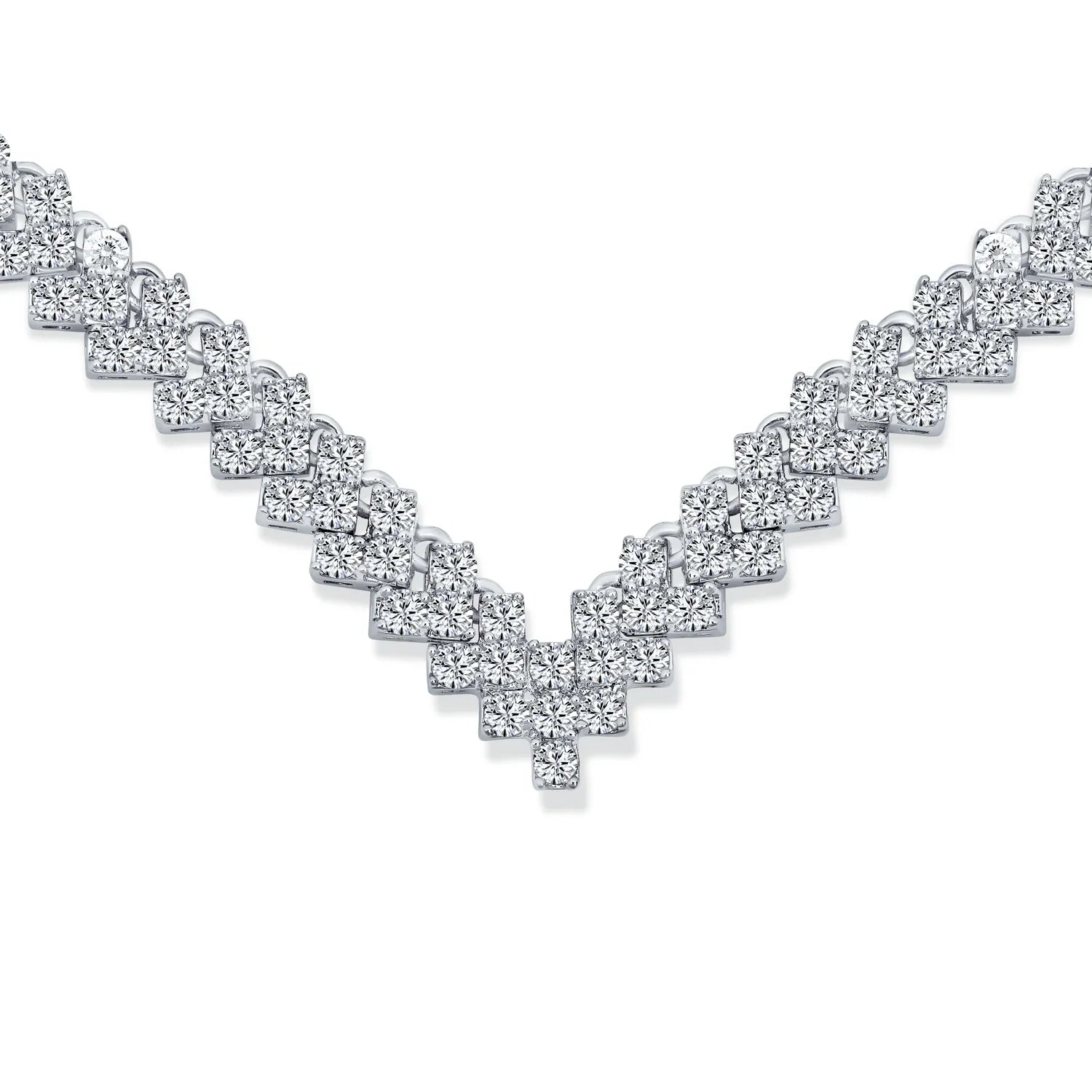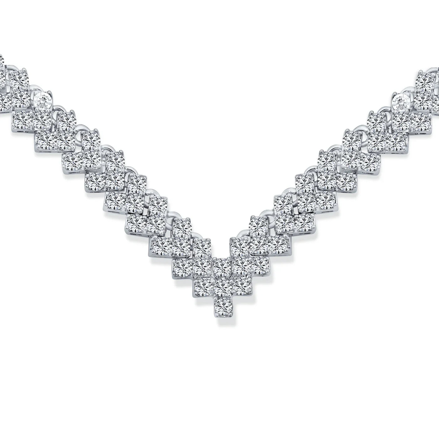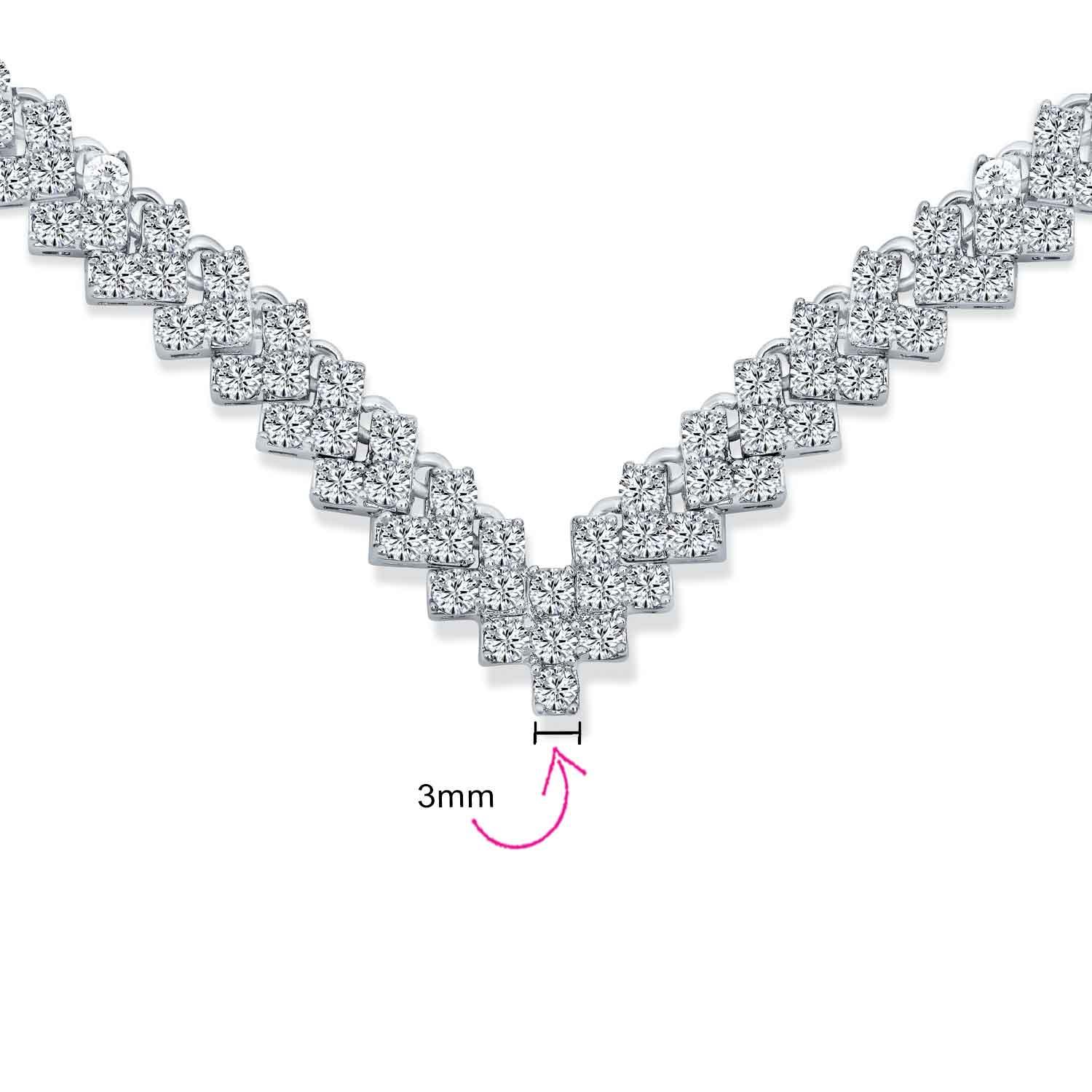 • The V-shaped bridal tennis necklace captures your dream wedding's essence. Romantic, enchanting, refined, and sophisticated. This stunning Cubic Zirconia accessory is perfect for your special day. At 15 inches, it complements any wedding gown style. Ideal for the entire wedding party, including the mother of the bride. Also, a perfect gift for April birthdays and jewelry lovers.