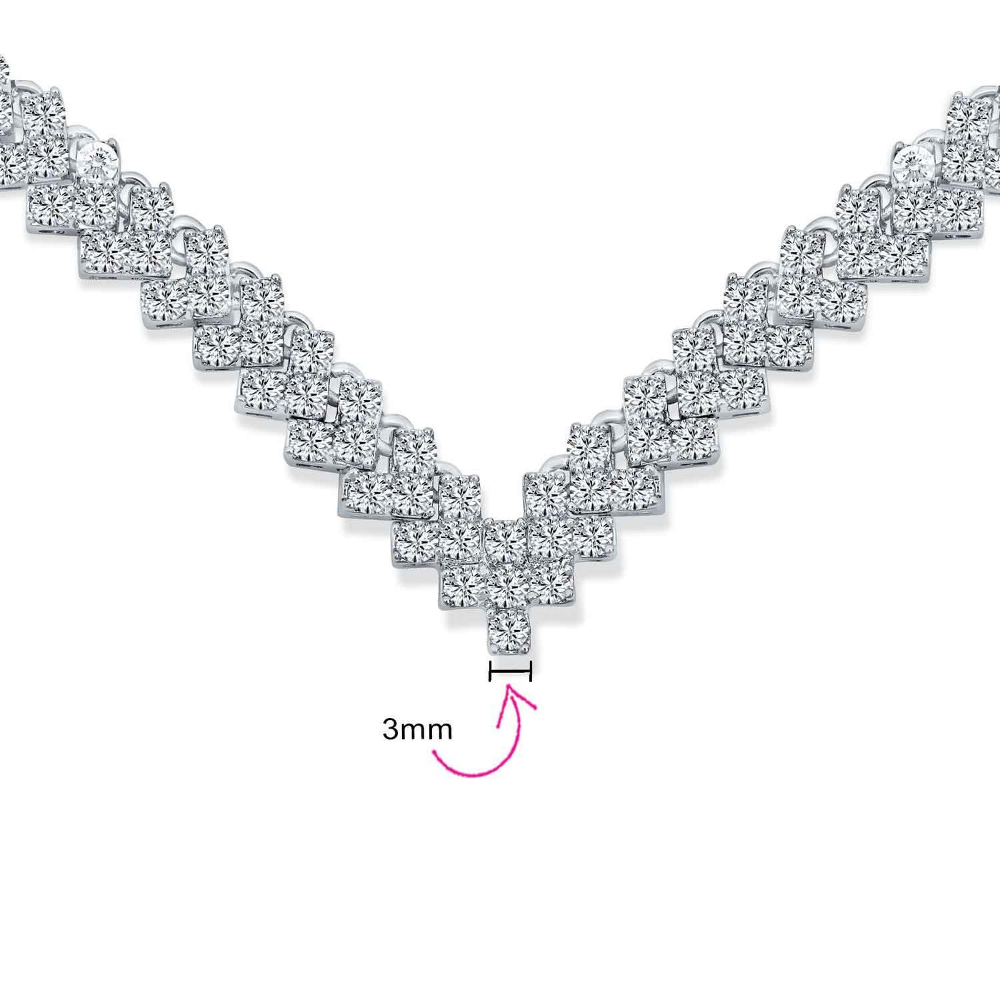 • STUNNING FOR YOUR SPECIAL DAY - From your wedding day to a night out, this scintillating ART DECO STYLE tennis necklace featuring shimmering V- trio drop forming a larger, V shaped design. Classic estate jewelry style tennis necklace heart shaped czs is contoured to drape gracefully and comfortably around your neckline. Add a touch of sparkle and glam with this red carpet celebrity style timeless graduated heart necklace This evening necklace has significant weight and features an interlocking tongue clasp with wing closure to make sure it will not fall off. Prefect for any special occasion, cocktail bridal party, prom, or gala.