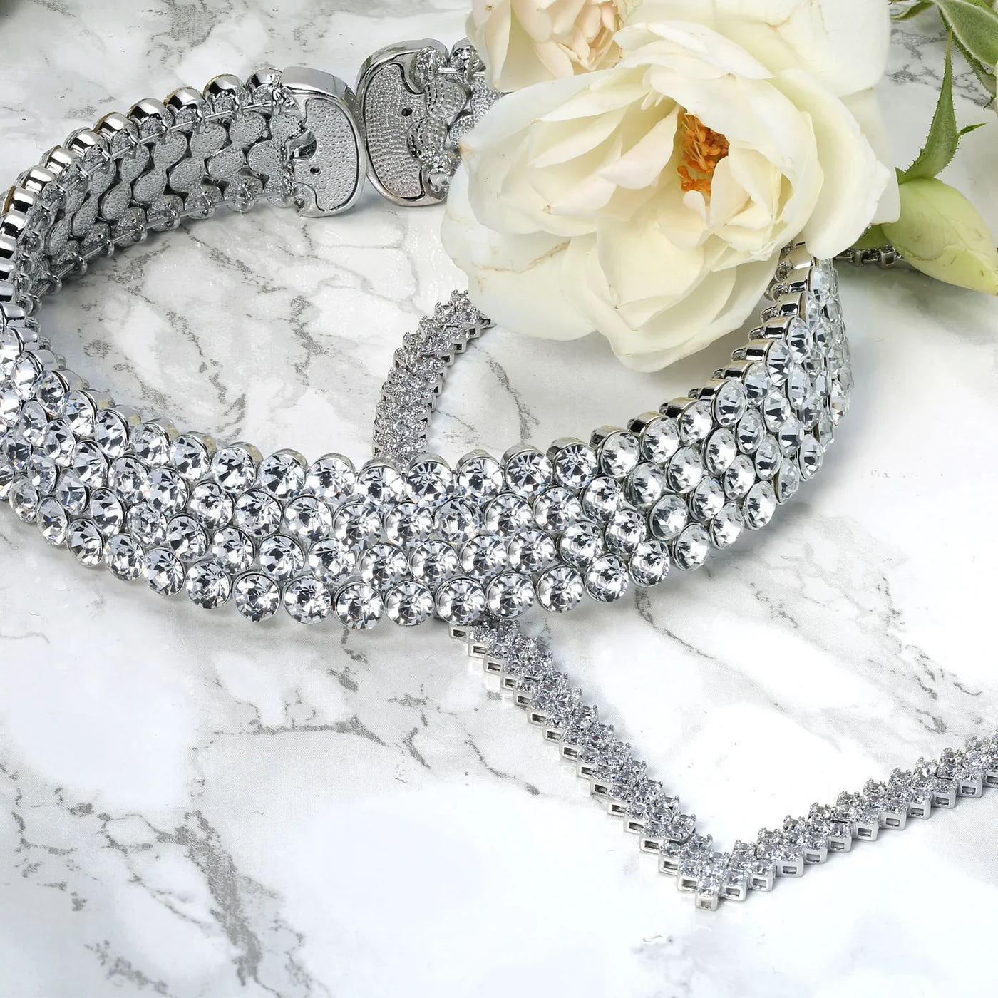 Art Deco Bridal Collar Necklace with Geometric Cubic Zirconia V Chevron Design - Bling Jewelry