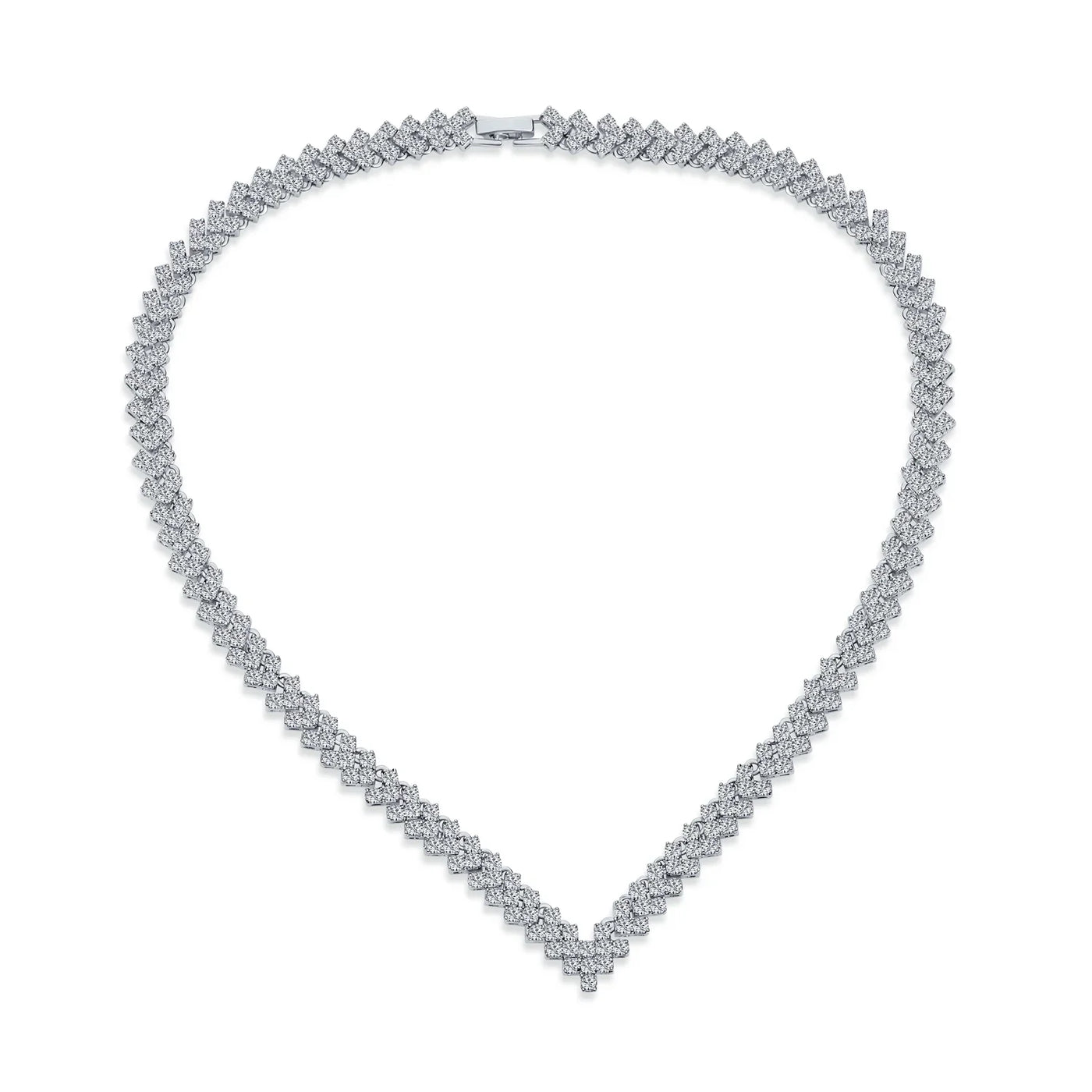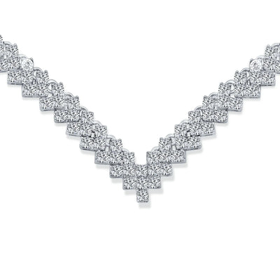 Art Deco CZ Bridal Collar Necklace Geometric V Chevron