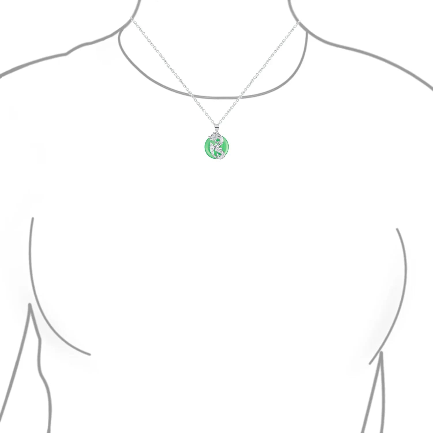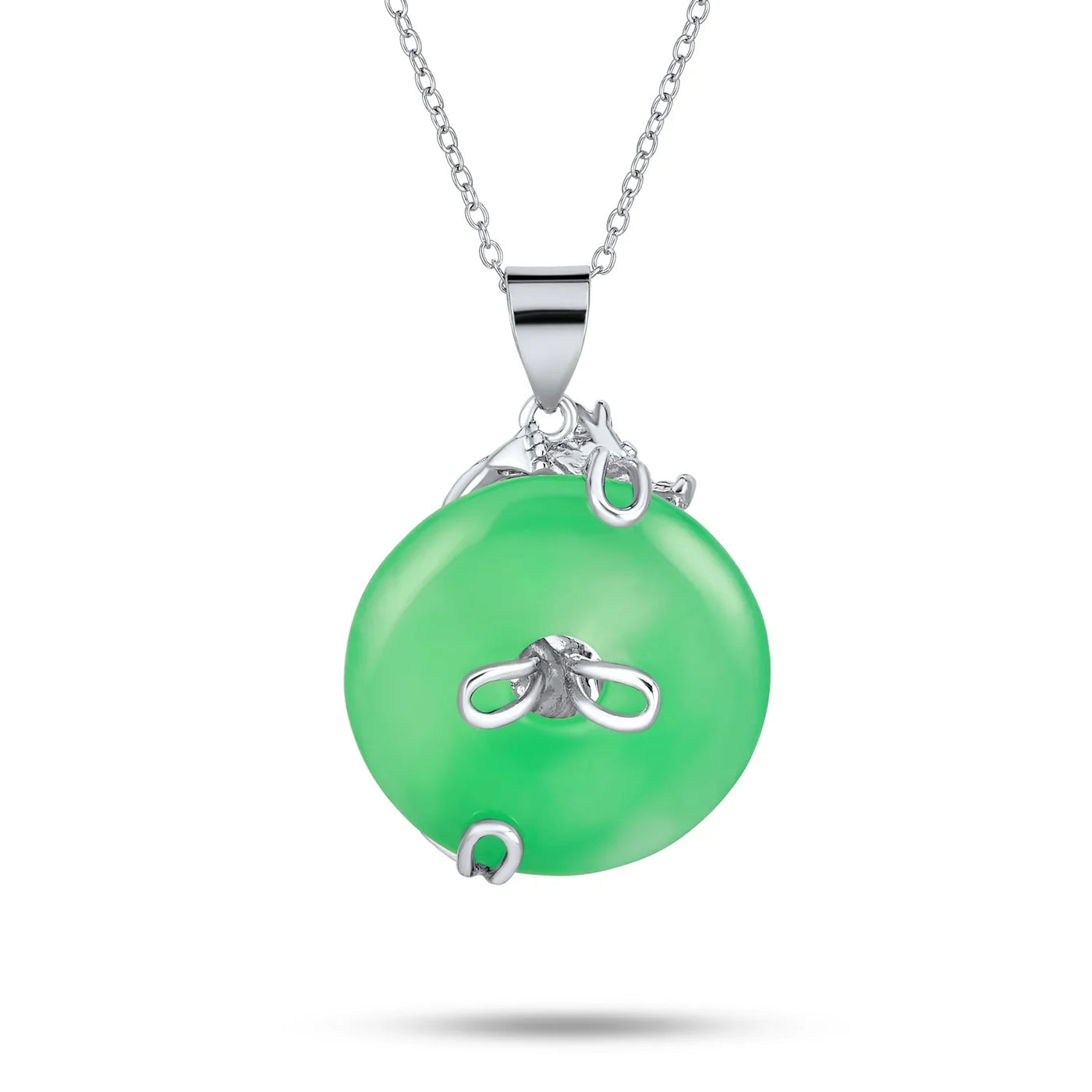 • Our .925 Sterling Silver dragon pendant rests on a Dyed Jade disc. This mythical creature embodies unique dragon legends. Brighten your silver animal jewelry collection with this amulet pendant. Perfect as a lucky charm gift for a friend. Chain included.