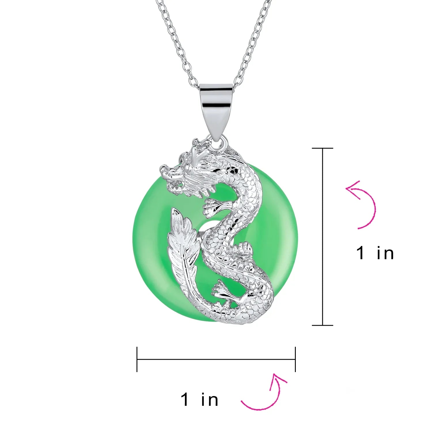 Asian Style Green Jade Dragon Pendant Necklace in Sterling Silver 18 Inch - Bling Jewelry