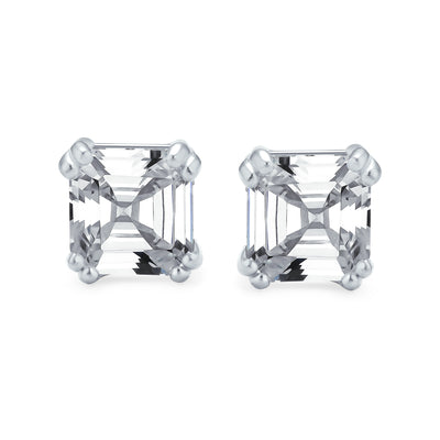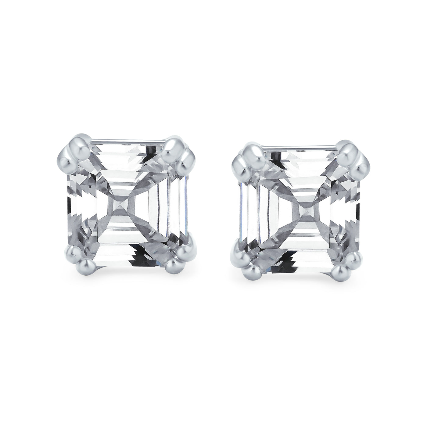 - Look fabulous with a pair of stunning Mens Silver Square CZ Asscher Cut stud earrings. These cz stud earrings are crafted with 925 sterling silver and features a 5mm asscher cut clear cubic zirconia stone in the center. Buy a pair of this mens cz studs for your stylish dad as Father Day gifts or as graduation gifts. For pierced ears only.