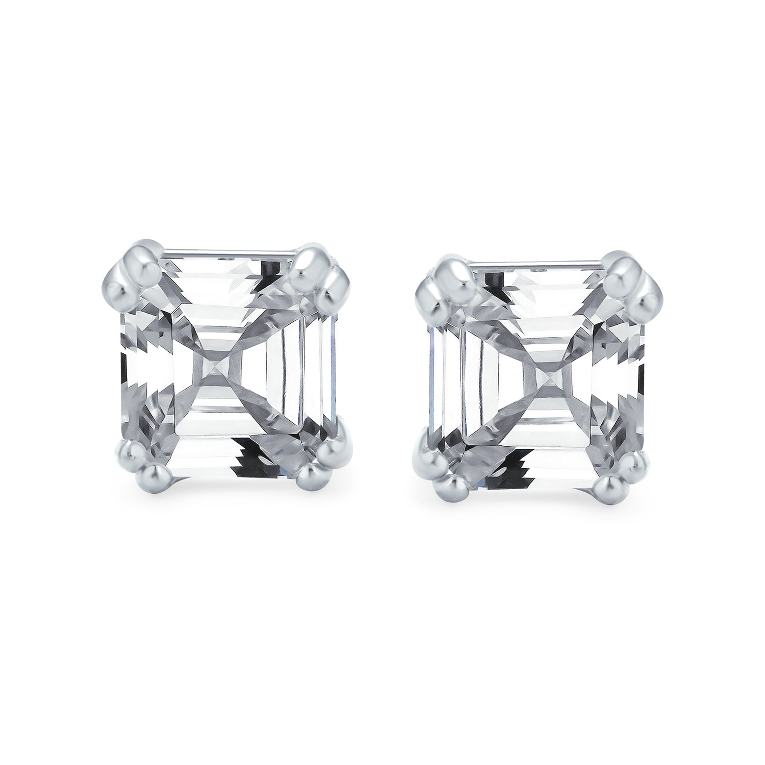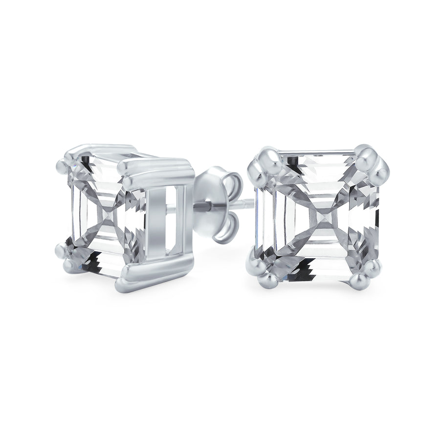 - Look fabulous with a pair of stunning Mens Silver Square CZ Asscher Cut stud earrings. These cz stud earrings are crafted with 925 sterling silver and features a 5mm asscher cut clear cubic zirconia stone in the center. Buy a pair of this mens cz studs for your stylish dad as Father Day gifts or as graduation gifts. For pierced ears only.