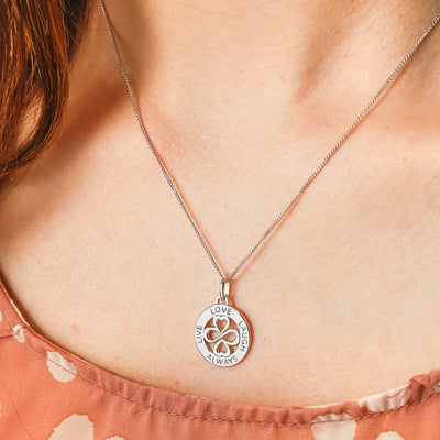 - This radiant Sterling Silver necklace features an elegant circle pendant with the AYLLU symbol, inscribed with "love, faith, luck, forever." Celebrate AYLLU's ideals of love, luck, and unity with this lustrous sterling silver piece. Packaged in handcrafted gift boxes with a pamphlet sharing Ayllu's community story.