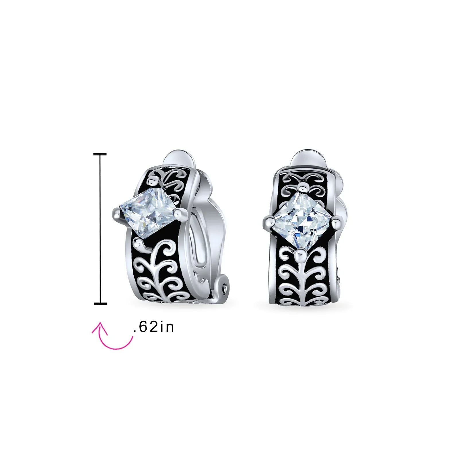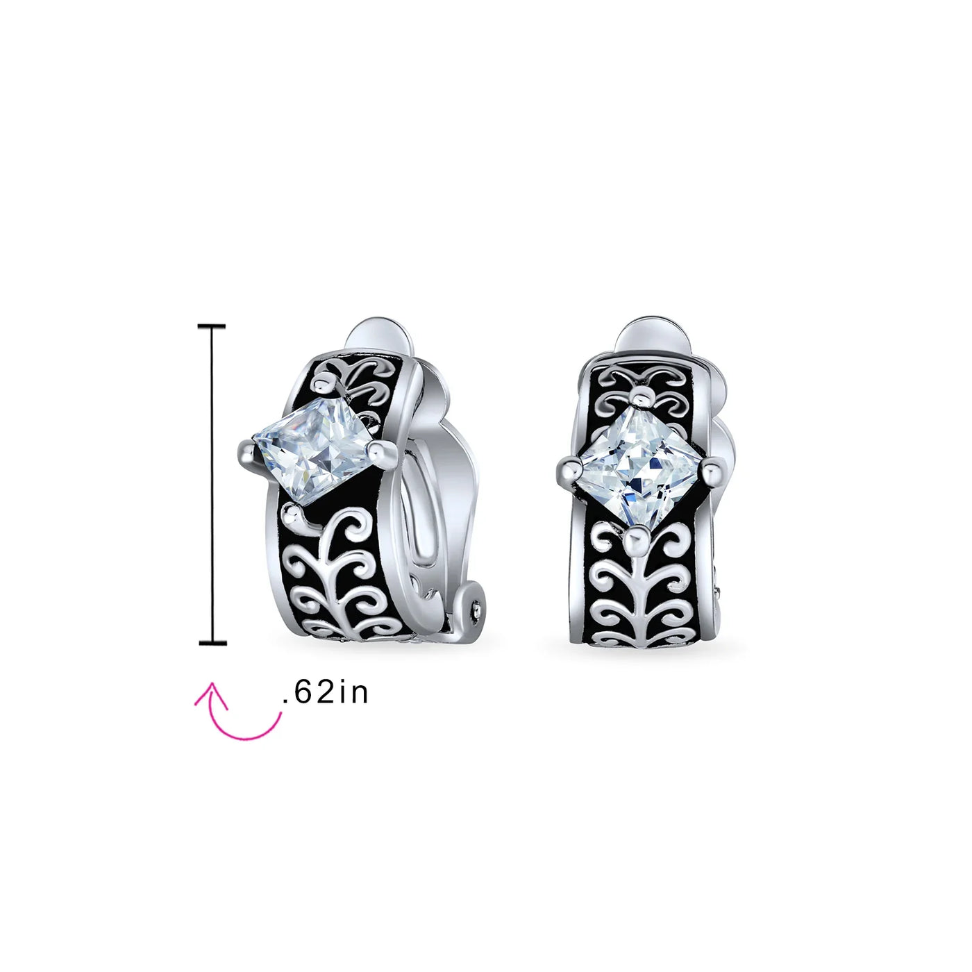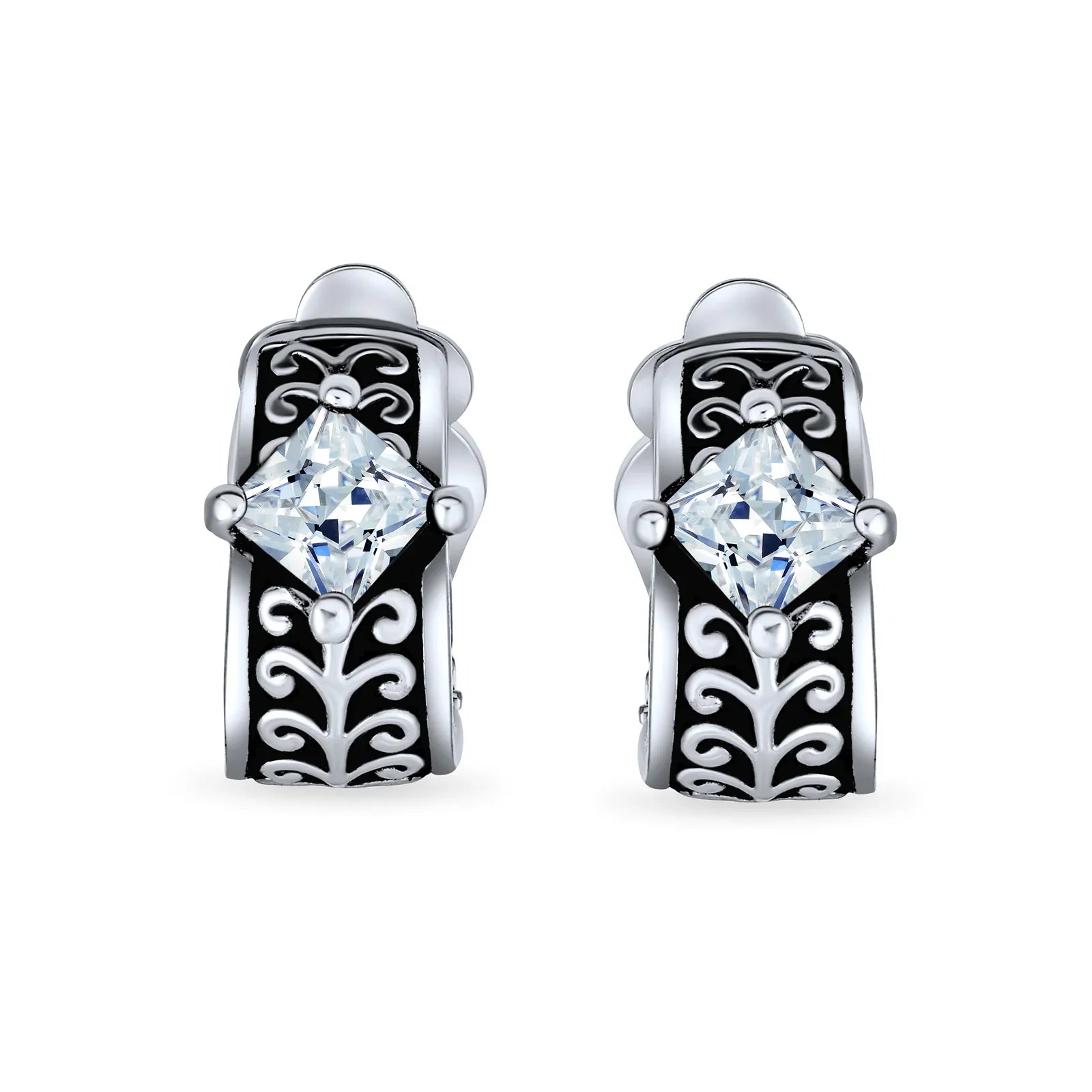 - Discover our stunning Black Crystal Bali Style Vines rhodium plated clip on earrings. These affordable earrings feature a Bali Style vine design with an elegant square black crystal. Perfect for both formal and casual wear, these dazzling earrings will complement your entire wardrobe. Be a fashionable trendsetter with these modern Bali Style earrings. Ideal for July birthdays and holiday gifts.