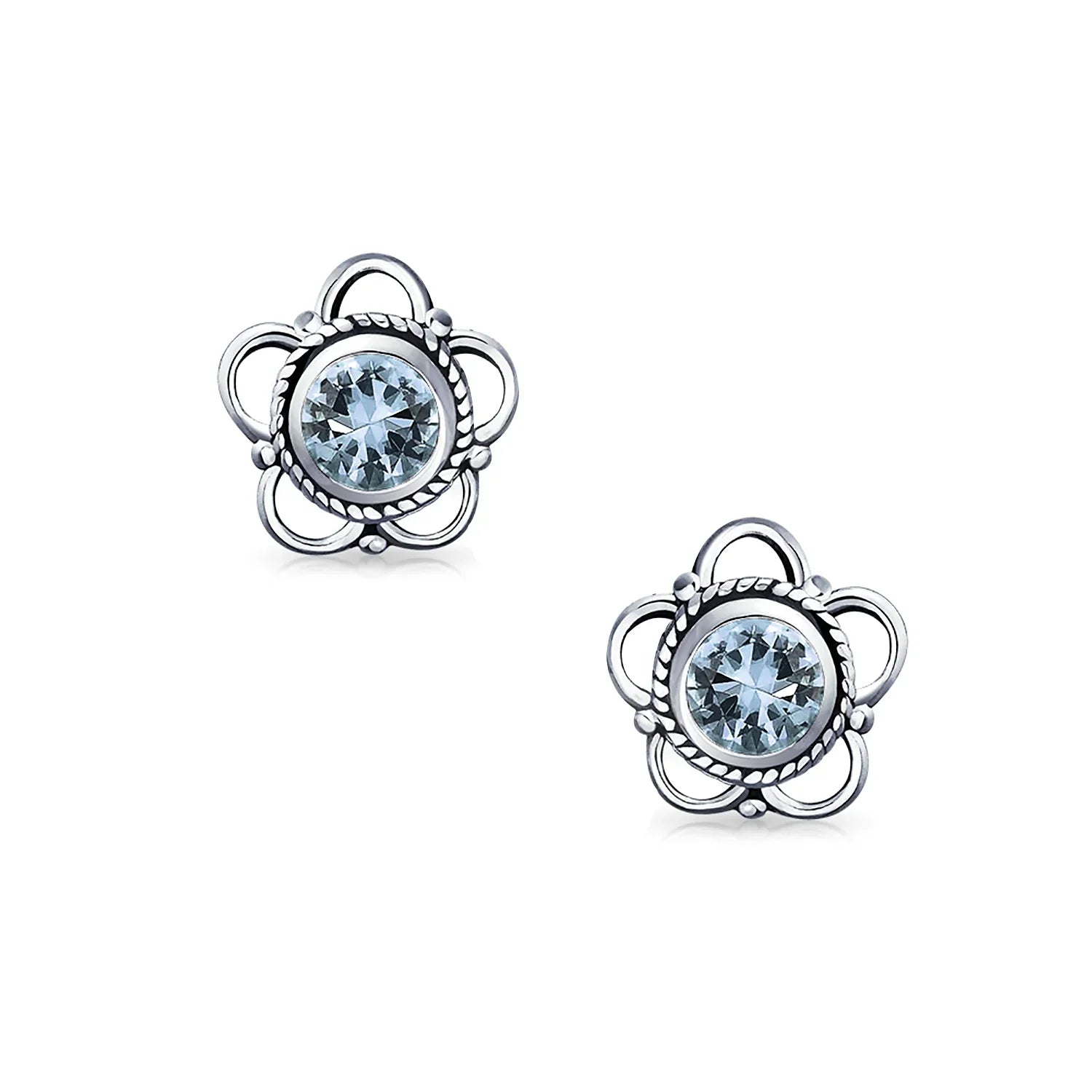 - BEAUTIFUL DESIGN - Add a pop of lustrous color with gracefully feminine style to your look with these exquisite 925 silver stud earrings. Accented by a shimmering, sky blue topaz stone at center of a delicate, cut out floral motif.