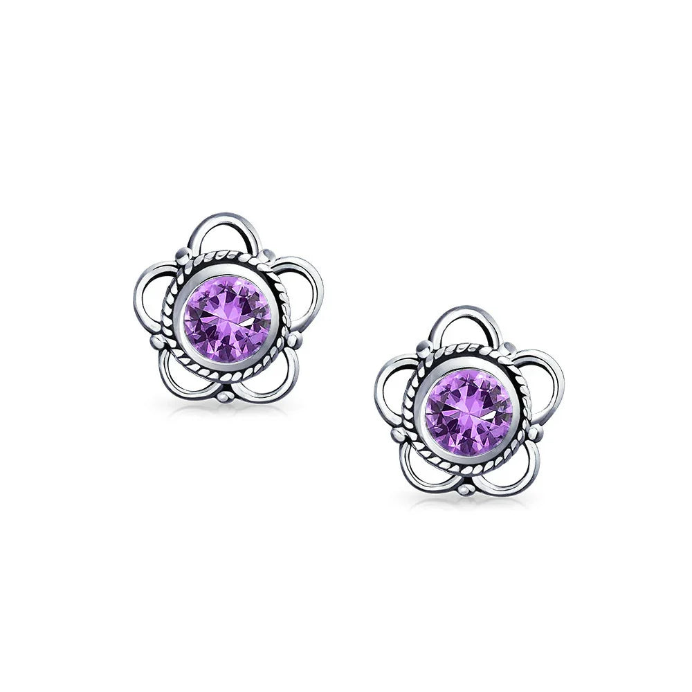 - Searching for a unique gift? Birthstone studs are perfect. Gift her first pair of birthstone earrings. Each earring has a 4mm birthstone in a sterling silver flower. Lightweight for sensitive earlobes. Oxidized silver ensures long-lasting shine. Celebrate February with stunning Amethyst. A treasure she'll cherish forever. Ideal for Aquarius of all ages.