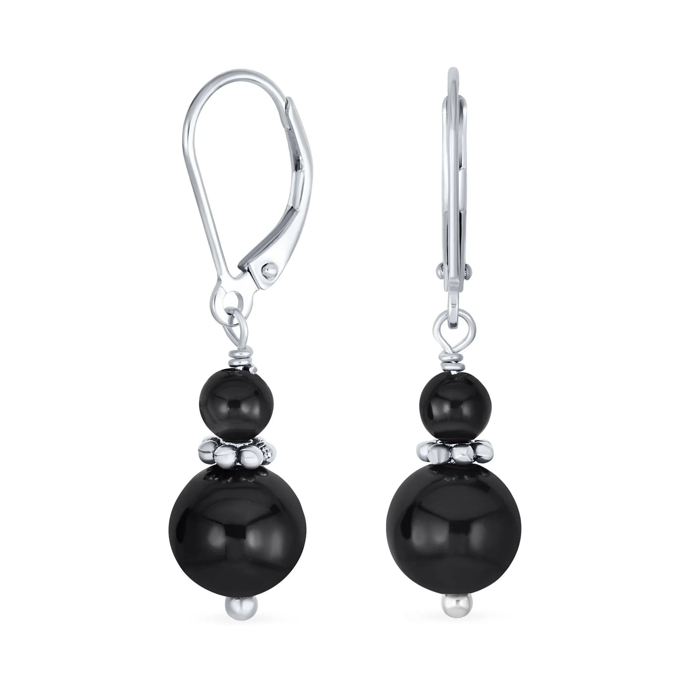 - Caviar Beaded blacked edge separator in sterling silver its between 8mm and 4mm genuine gemstone balls. These dangling earrings with this unique Balineses detail, any fashionista will love. Perfect accessory to pair with daytime, office casual wear or evening.