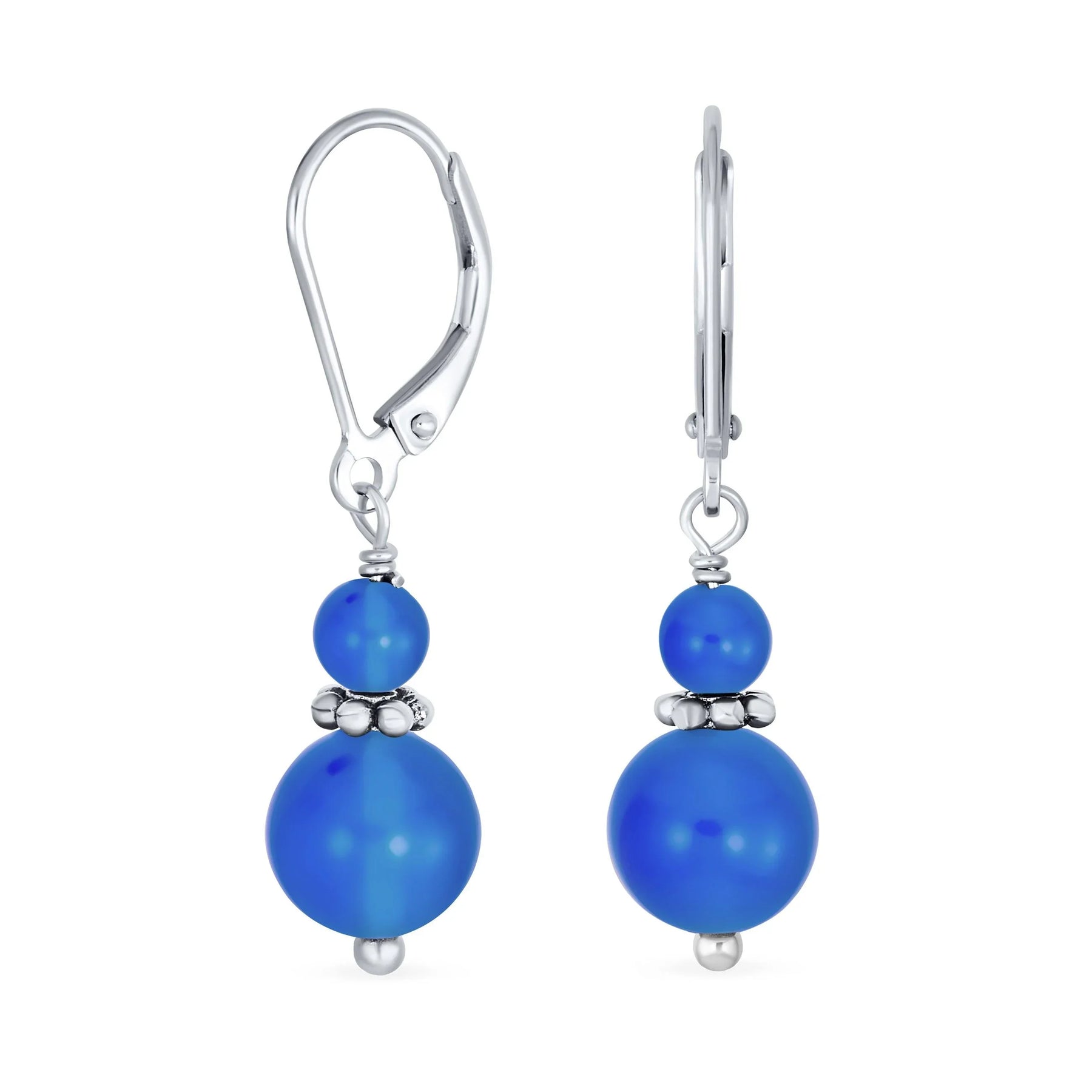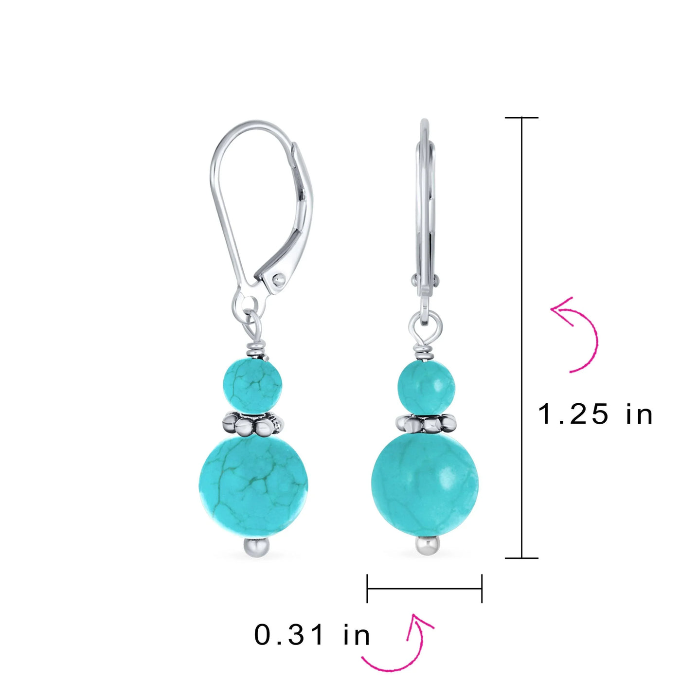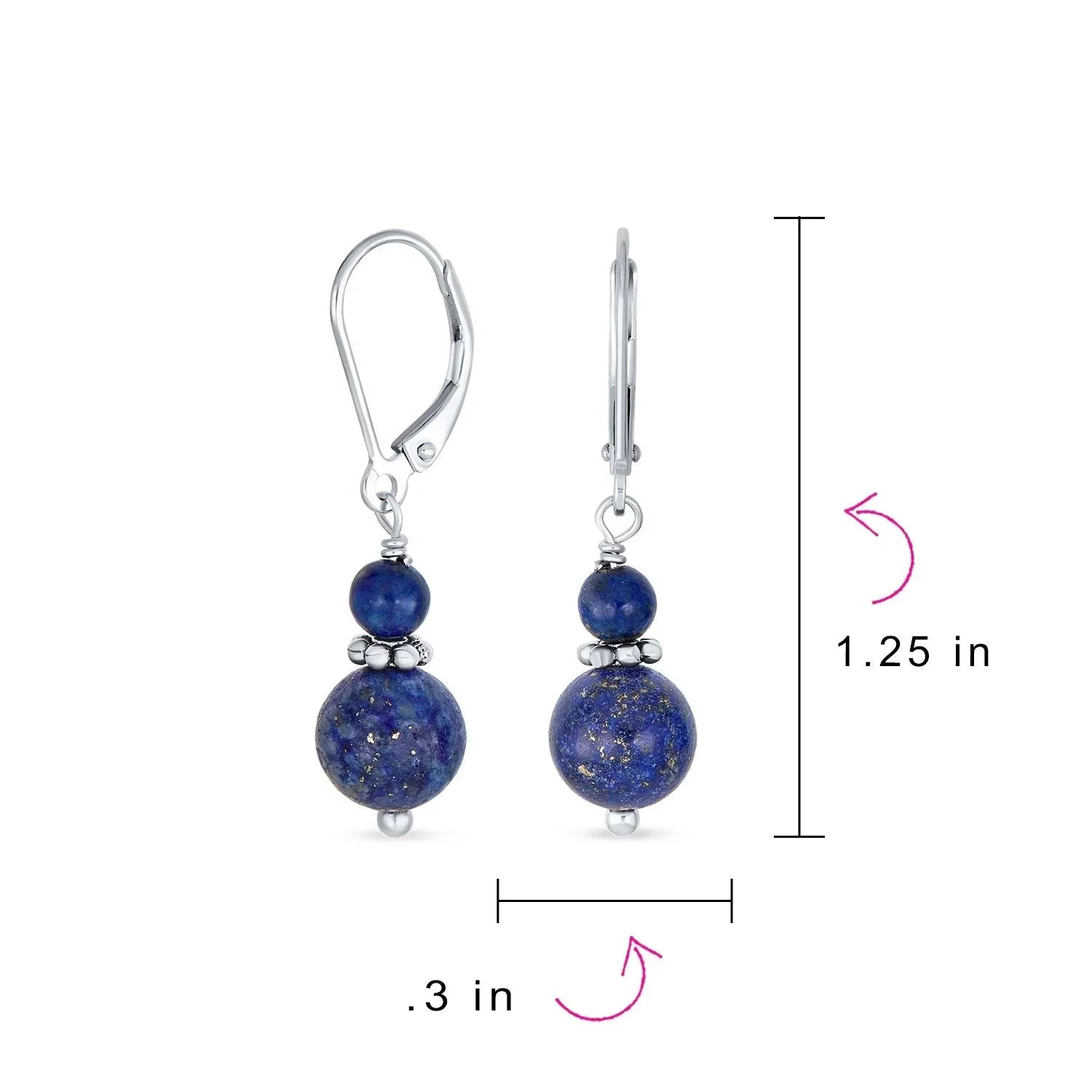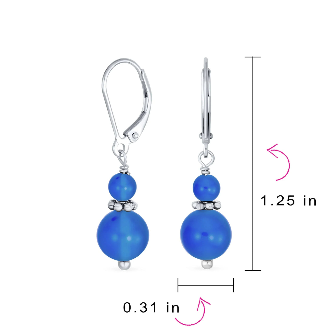 - Measure: 1.25 inch L x 0.31" W Weight: 3.2 Grams Material: .925 Sterling Silver Blue Agate Stone: 4 and 8MM bead drop balls