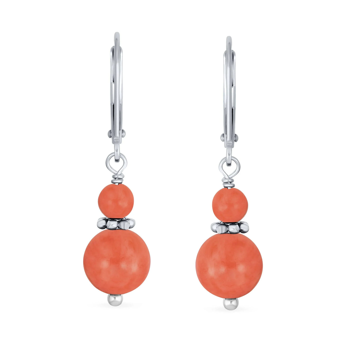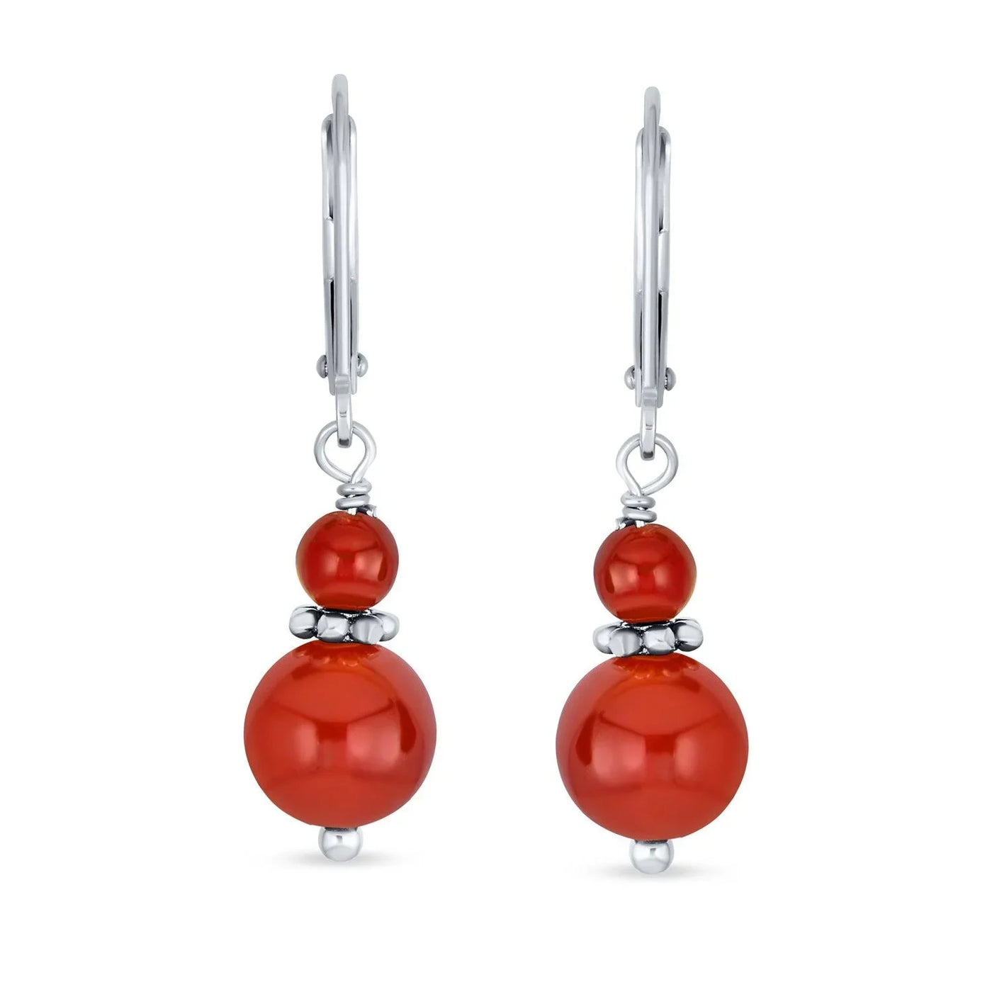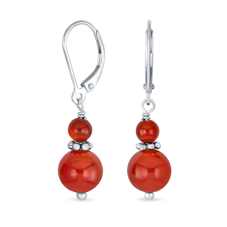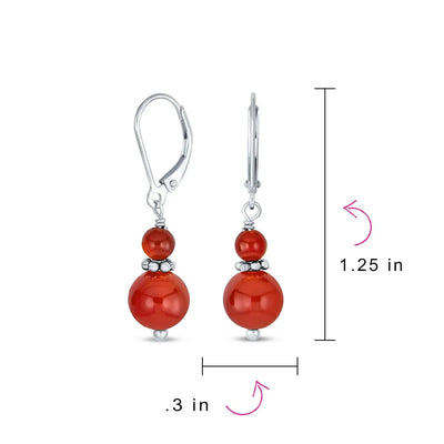 - Add vibrant color effortlessly with our dyed red Coral earrings. Featuring an 8mm ball in stunning red, these sterling silver earrings have a polished finish and Lever back design for easy fastening. Perfect for adding a fun dash of red to your school or work look, or pairing with your favorite dress for sophisticated style. Get ready with our dyed red Coral earrings.