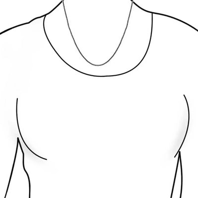 A common choice for women that will fall just below the throat at the collarbone. This length is popular for adding pendants which will hang over a crew neck.