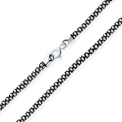 - Elevate your jewelry collection with this stunning sterling silver Bali style chain, perfect for showcasing your favorite charms and pendants. The lobster claw closure and antique finish add a touch of elegance, while the popcorn chain design allows for endless customization options. Take full creative control and make a statement with this versatile piece.