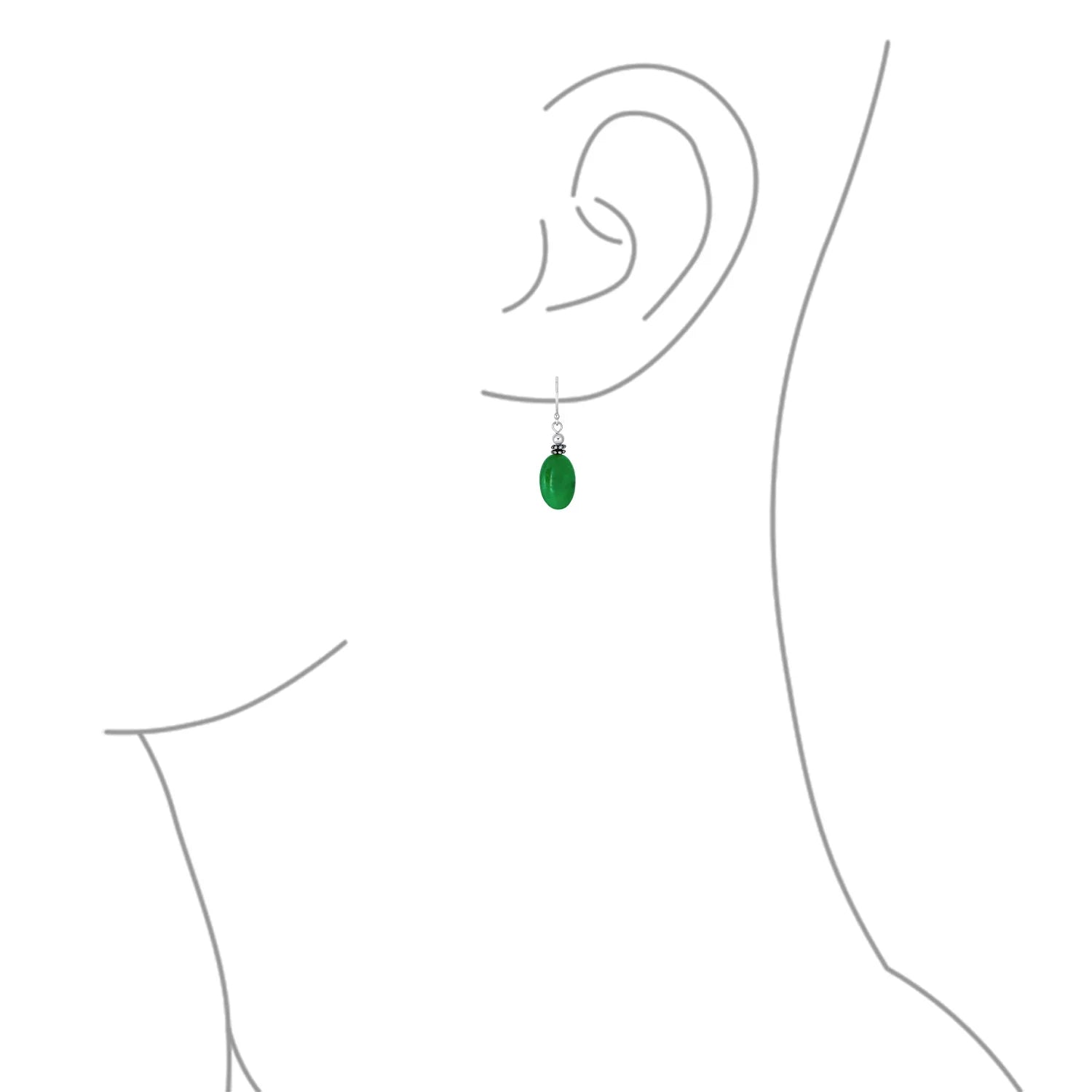 • For Pierced Ears, Stone: 9X12MM Jade Material: .925 Sterling Silver, Rhodium Plating, Anti -Tarnish Measure: 1 Inch Length x 0.40" W Weight: 2 Gram