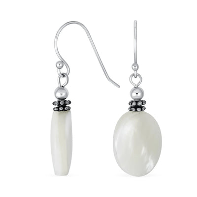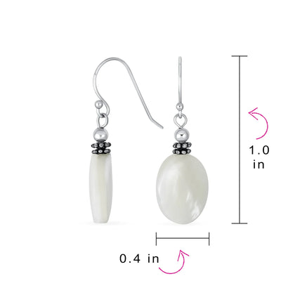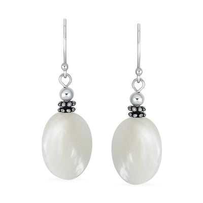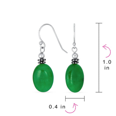 Bali White MOP Green Jade Oval Gemstone Drop Earrings Silver