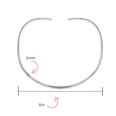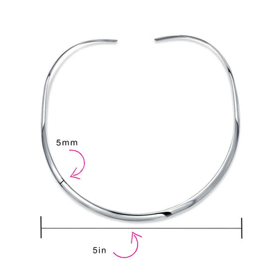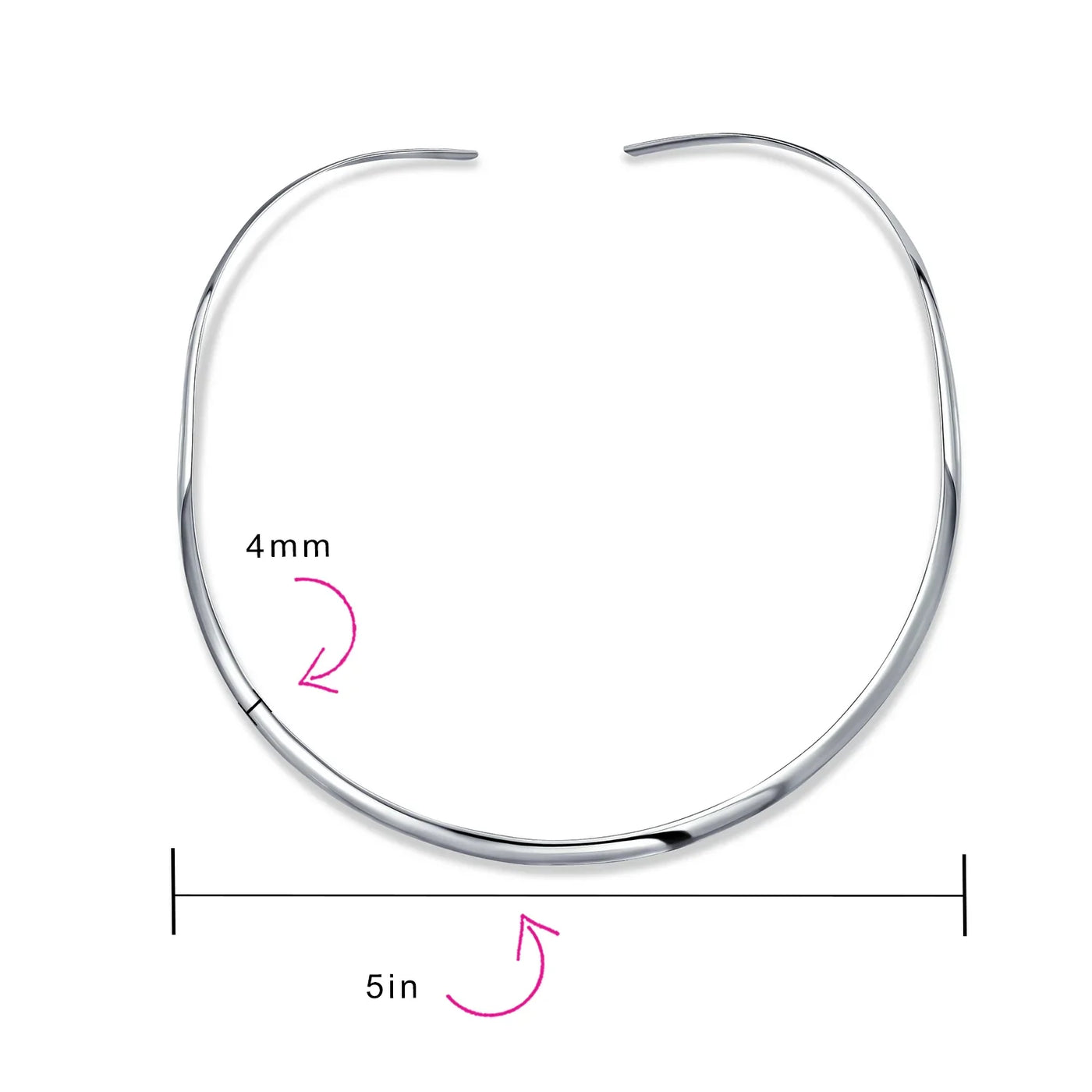 - Discover a versatile silver choker necklace that complements any style. Wear it alone for a modern twist. Add charms and pendants for a unique statement. Crafted from .925 Sterling Silver, it maintains shape and shine. Effortlessly elevate your look with this open collar necklace.