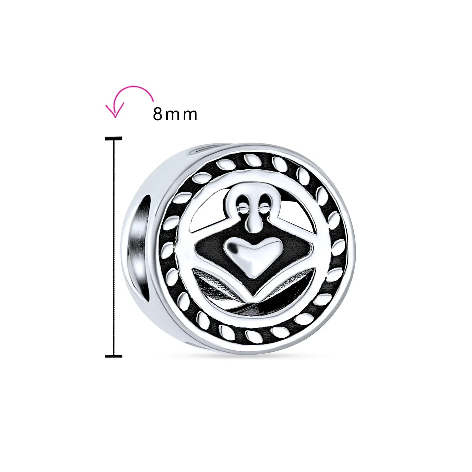 - Showcase your love for Celtic tradition with our antique-style sterling silver Claddagh charms. This intricately detailed bead features the classic Claddagh design with hands, heart, and crown, symbolizing love, friendship, and loyalty. Celebrate your Irish heritage with elegance!