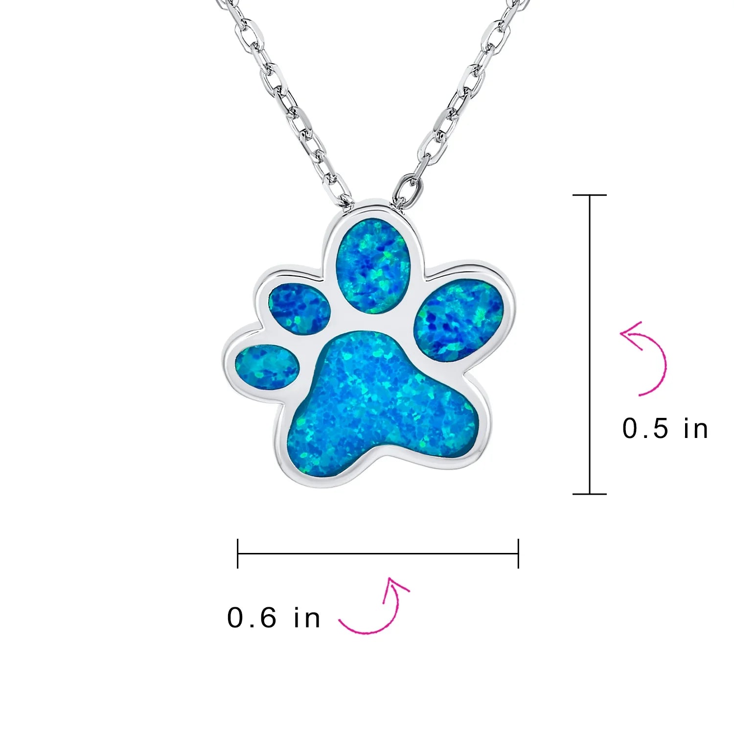 - Perfect for dog and cat lovers, this sterling silver blue opal paw print pendant adds style. Celebrate her love of animals with this trendy dog lover jewelry and cat lover jewelry. animal jewelry for people adds a unique, fun touch to any outfit. Paw print necklaces make a stylish statement and showcase her love for furry friends.