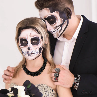 Biker Skull Heads Black Leather Cuff Bracelet Punk Rock