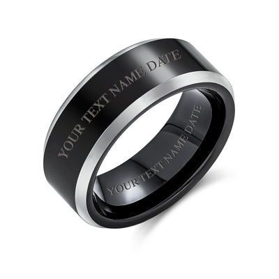 • Elegance meets masculinity in this stunning Wedding Band for men. This sophisticated band ring for men features black with a polished finish. Beveled silver edges complete the minimal yet chic design creating a subtle, two tone look. A comfort fit creates the perfect, comfortable flit. A style that is also ideal for Fathers Day or anniversary gifts.