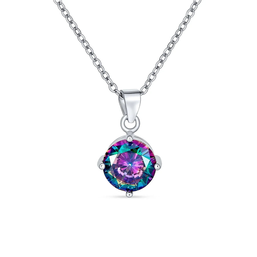 2CTW Black Mystic Rainbow CZ Solitaire Pendant Necklace in Sterling Silver - Bling Jewelry