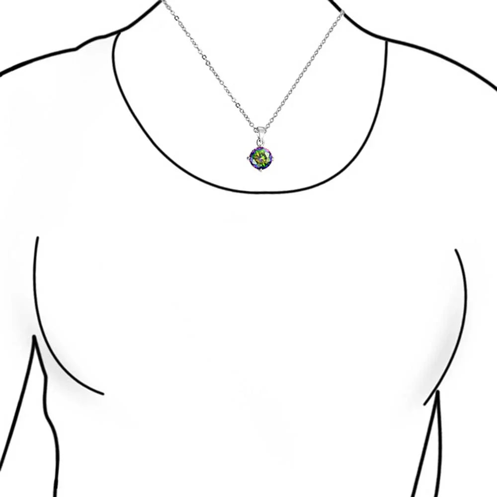 • Discover the allure of our multi-color rainbow topaz CZ pendant necklace . Crafted from .925 Sterling Silver, it features color-changing simulated rainbow topaz CZ. This stunning Cubic Zirconia necklace will captivate attention. Perfect gift for loved ones. Includes a 16-inch chain.