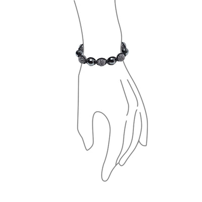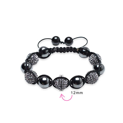 • Beaded bracelets add simple, elegant beauty to your wardrobe. Our Shamballa-inspired collection offers styles for everyone. This macramé bracelet is a dark beauty. It features crystal-encrusted black balls and faceted Onyx black beads. These beads unite on a black macramé bracelet, inspired by Shamballa Jewels, creating an unforgettable piece. It has a subtle reflective shine. The adjustable strand features two strings with faceted black beads. Unlike some bead bracelets, ours use high-quality gemstones and Austrian crystals. High class, high quality. Shamballa designs are inspired by Mads Kornerup's original Shamballa Jewels. For more, visit authentic Shamballa Jewels products.