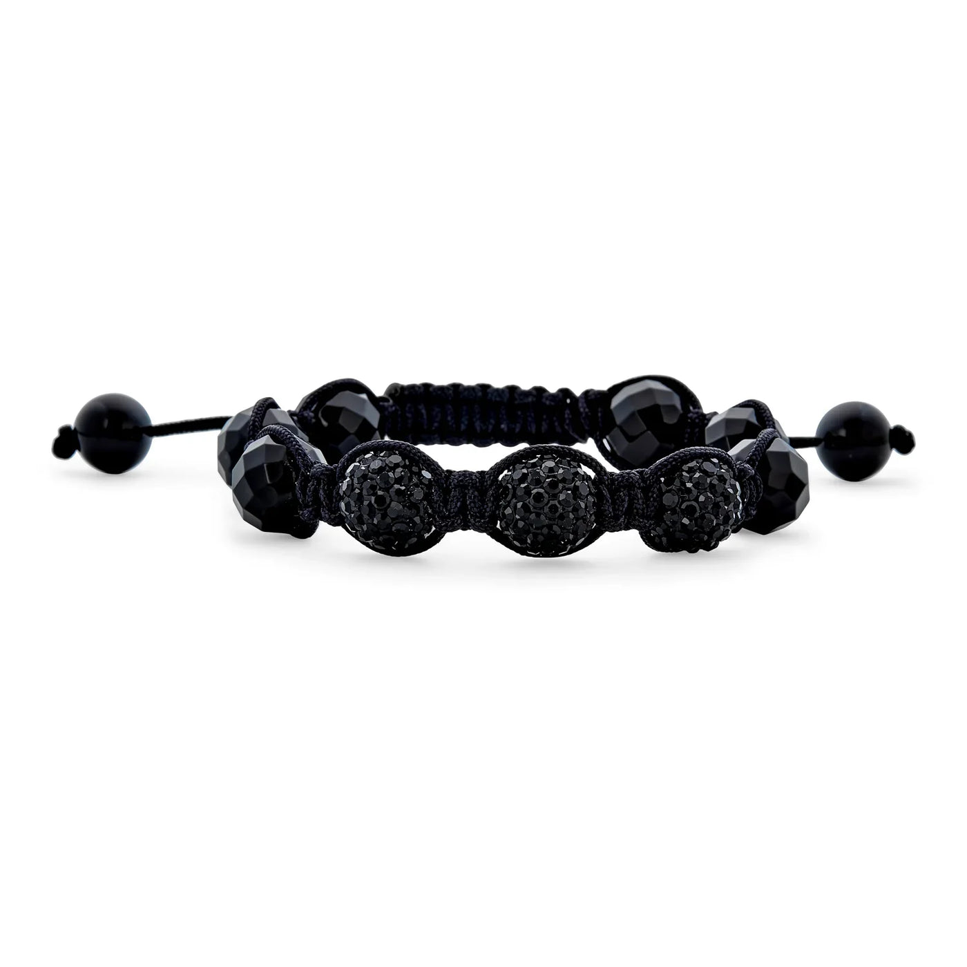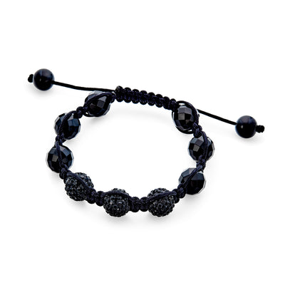 • Guard against negative energy and infuse captivating, Shamballa inspired style into your look with this beautifully designed, macramé bracelet. Highlighted by stunning, faceted onyx and black crystal bead balls.