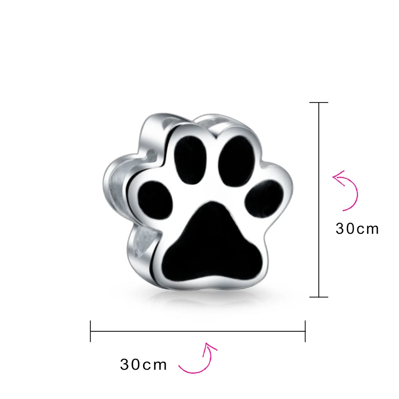 - Our 925 silver paw print charm is perfect for any dog or animal-themed bracelet. Black enamel adds playful, eye-catching detail. Four cutout hearts enhance the puppy love on this charming design.