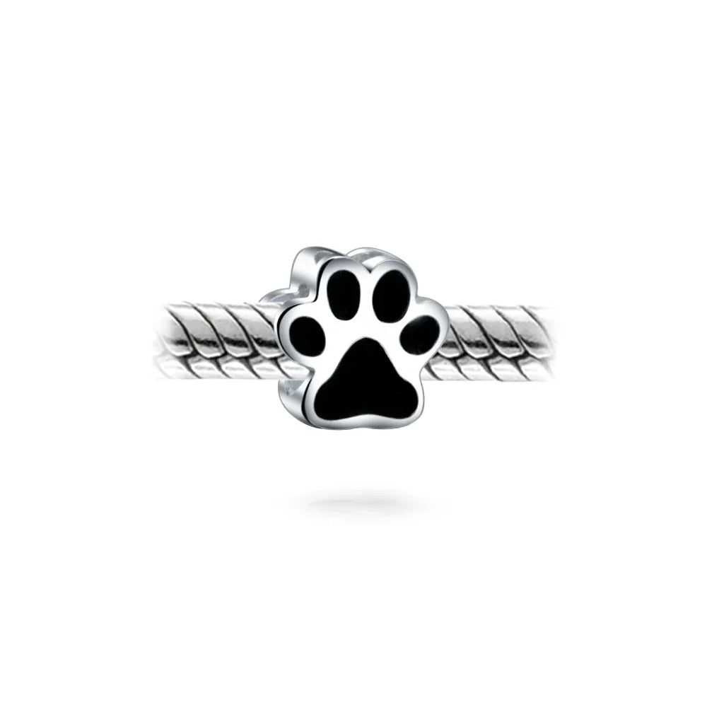 - BEAUTIFUL DESIGN -Show off your love for your furry friends by adding this too dog-gone cute charm to your bead story. Featuring a two-sided, puppy paw - print motif with graphic, black enamel detail in an adorably delicate design. Crafted with lustrous 925 silver.