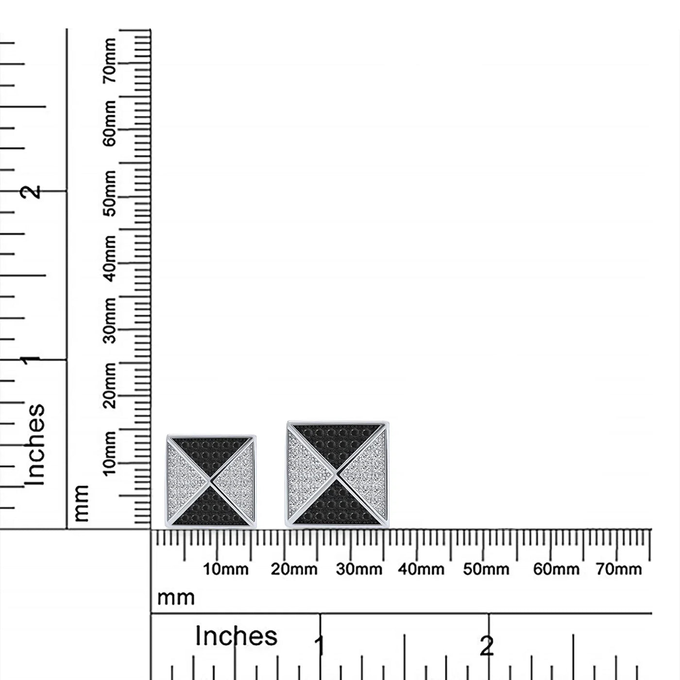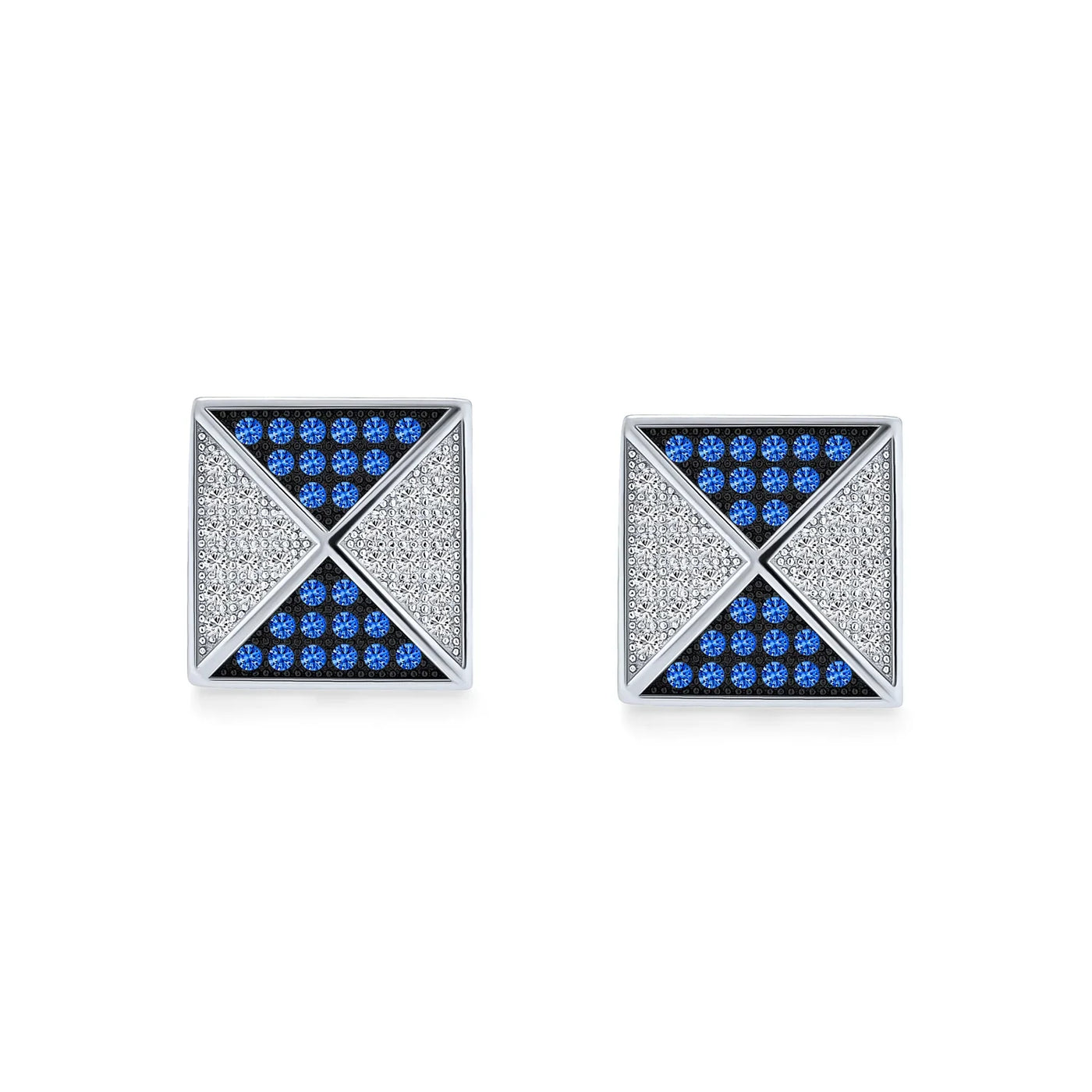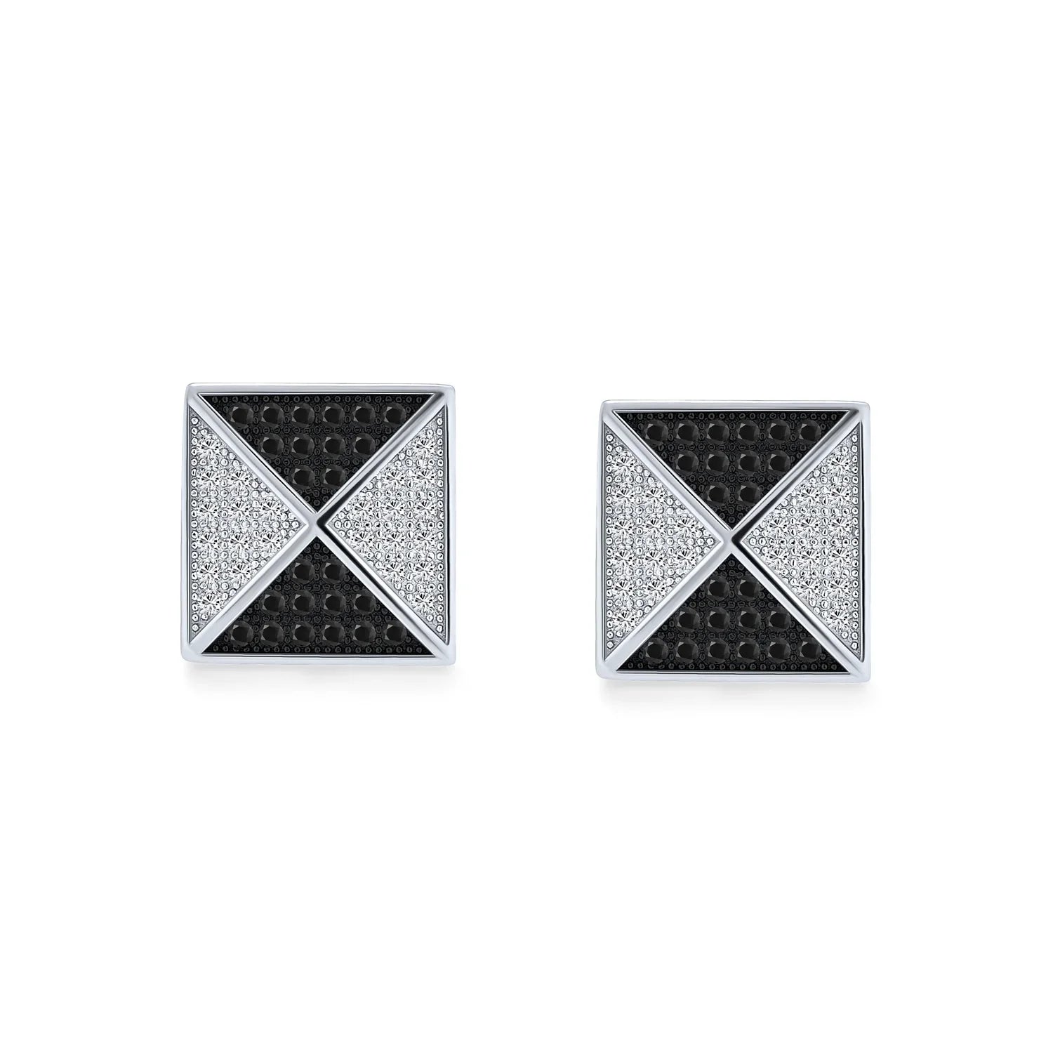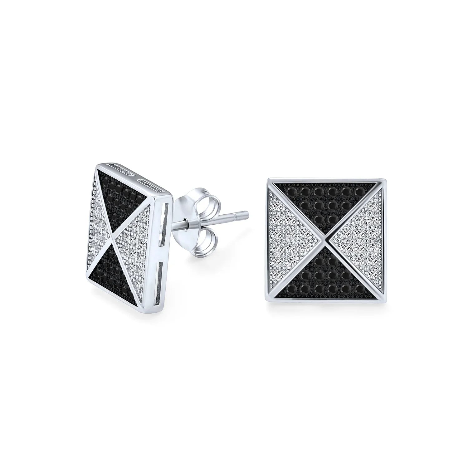 - Bring the look of the pyramids a lot closer to home when you order these Micro Pave Pyramid CZ Mens stud earrings. A gift of mens stud earrings is certain to please the thrill seeking gentleman in your life. These sterling silver stud earrings are designed in a stunning contrast of black and clear cubic zirconia stones that are set in a geometric pattern that are three dimensional. They are guaranteed to look sensational in the ear and are rhodium plated to prevent tarnish. These versatile and very affordable stud earrings are a perfect choice for all the men on your holiday list this year. Buy several pairs today.