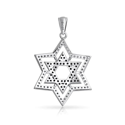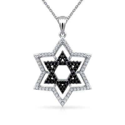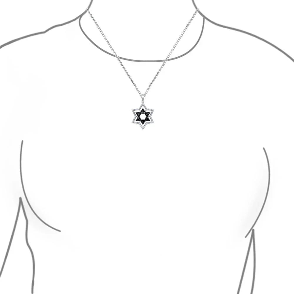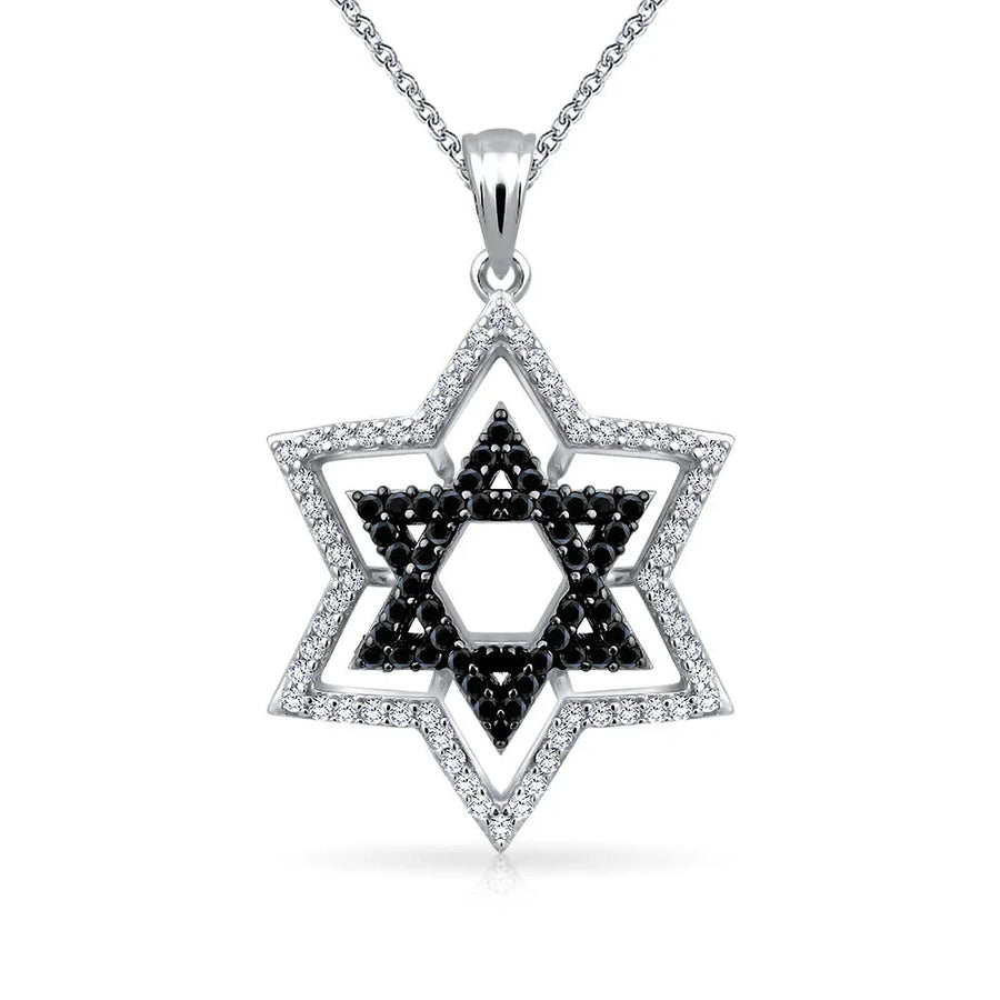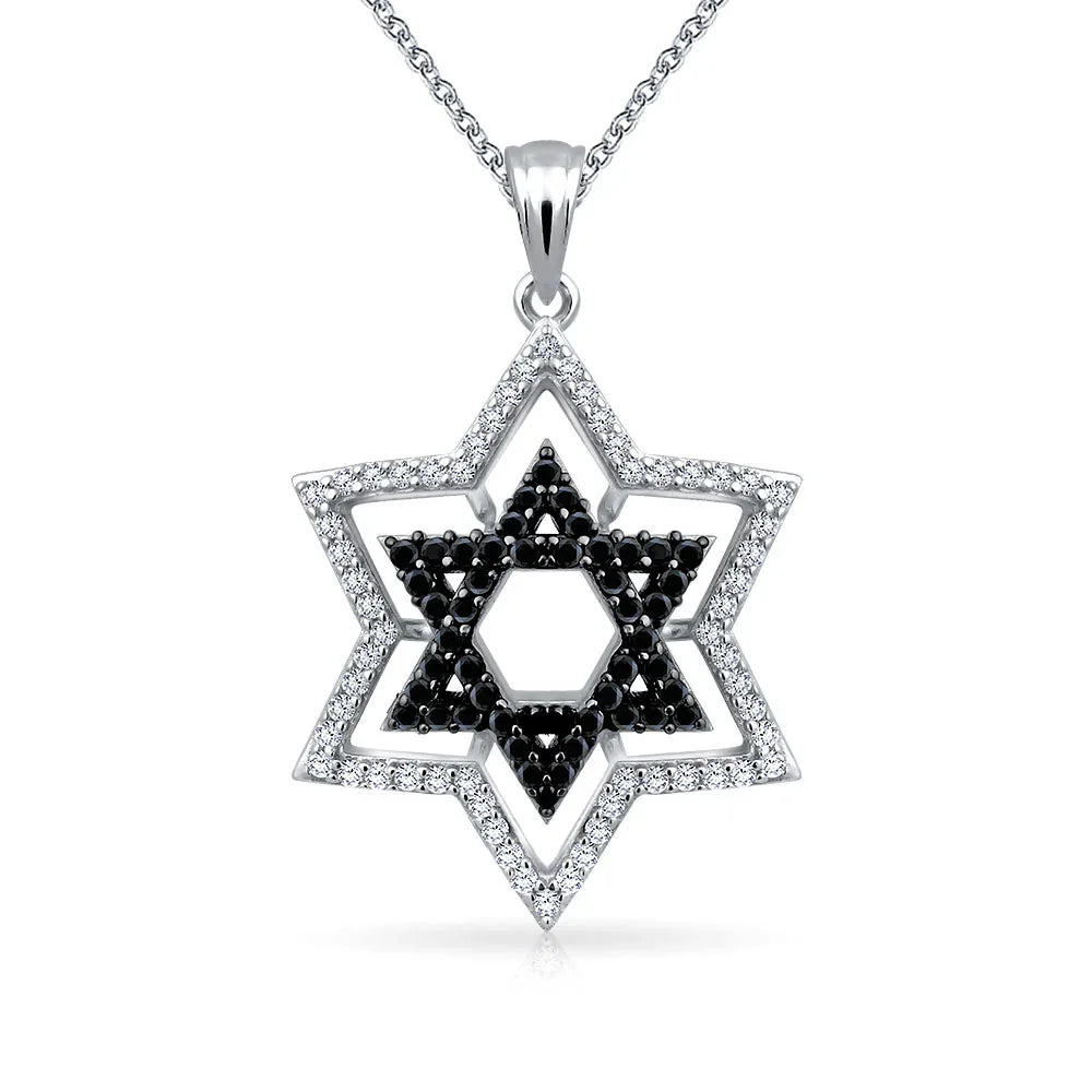 Black & White CZ Star of David Pendant Necklace Sterling Silver for Teens - Bling Jewelry