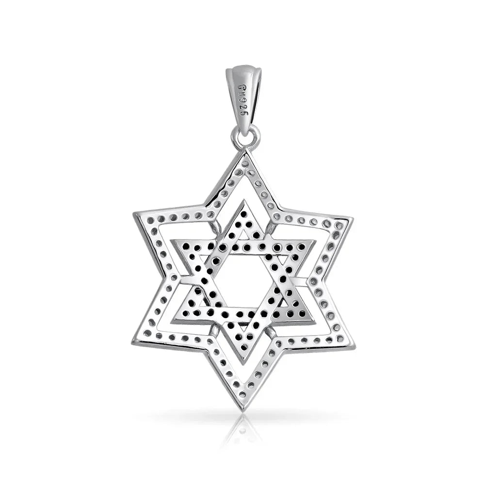 • Dazzling CZ Star of David Necklace: Perfect for fashion-savvy individuals who love religious jewelry. Ideal Bat Mitzvah gift. Iconic Judaic symbol. Crafted from .925 Sterling Silver with rhodium plating for lasting shine. 18-inch Rolo chain included.