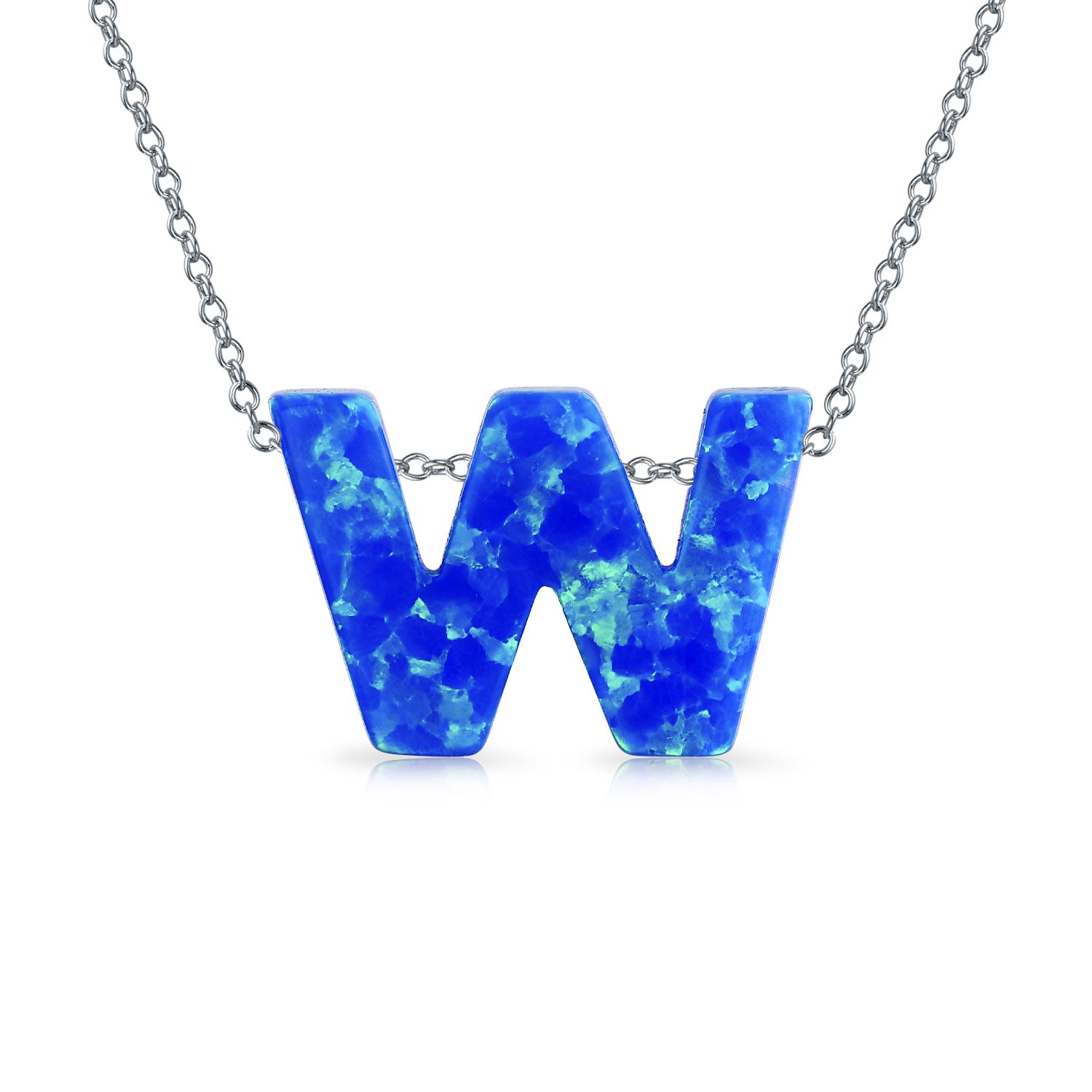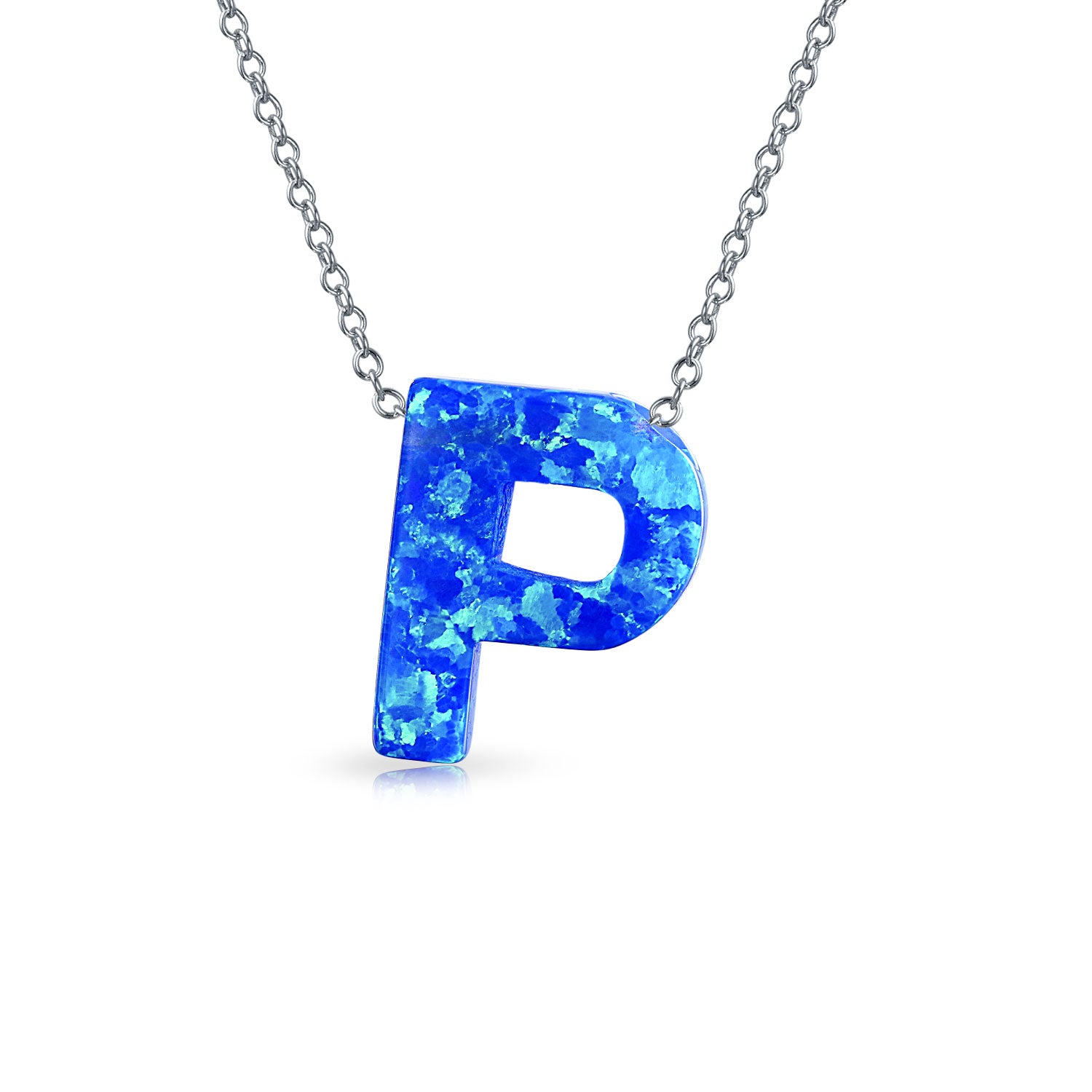 - Elevate your style with this vibrant pendant necklace . The created blue opal shines in iridescent blues and greens. Personalize with your initial on a 16-inch .925 silver cable chain. A charming way to showcase your unique flair.