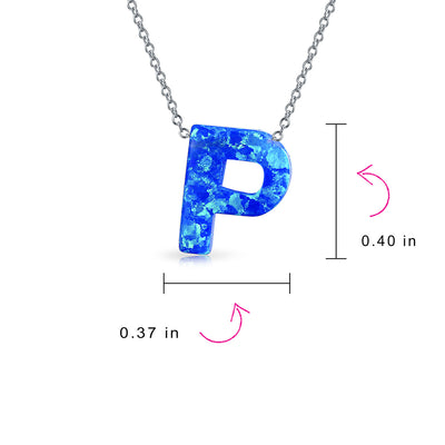 - Give personalized jewelry gift - represent your initials in style with this small opal pendant necklace uppercase letter initial P iridescent Aqua Blues on a cable chain.