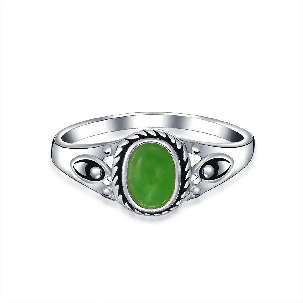 - Elegant and delicate, this sterling silver dyed green jade ring is perfect for stacking. Ring candy is trending, and our sterling silver ring fits right in.
