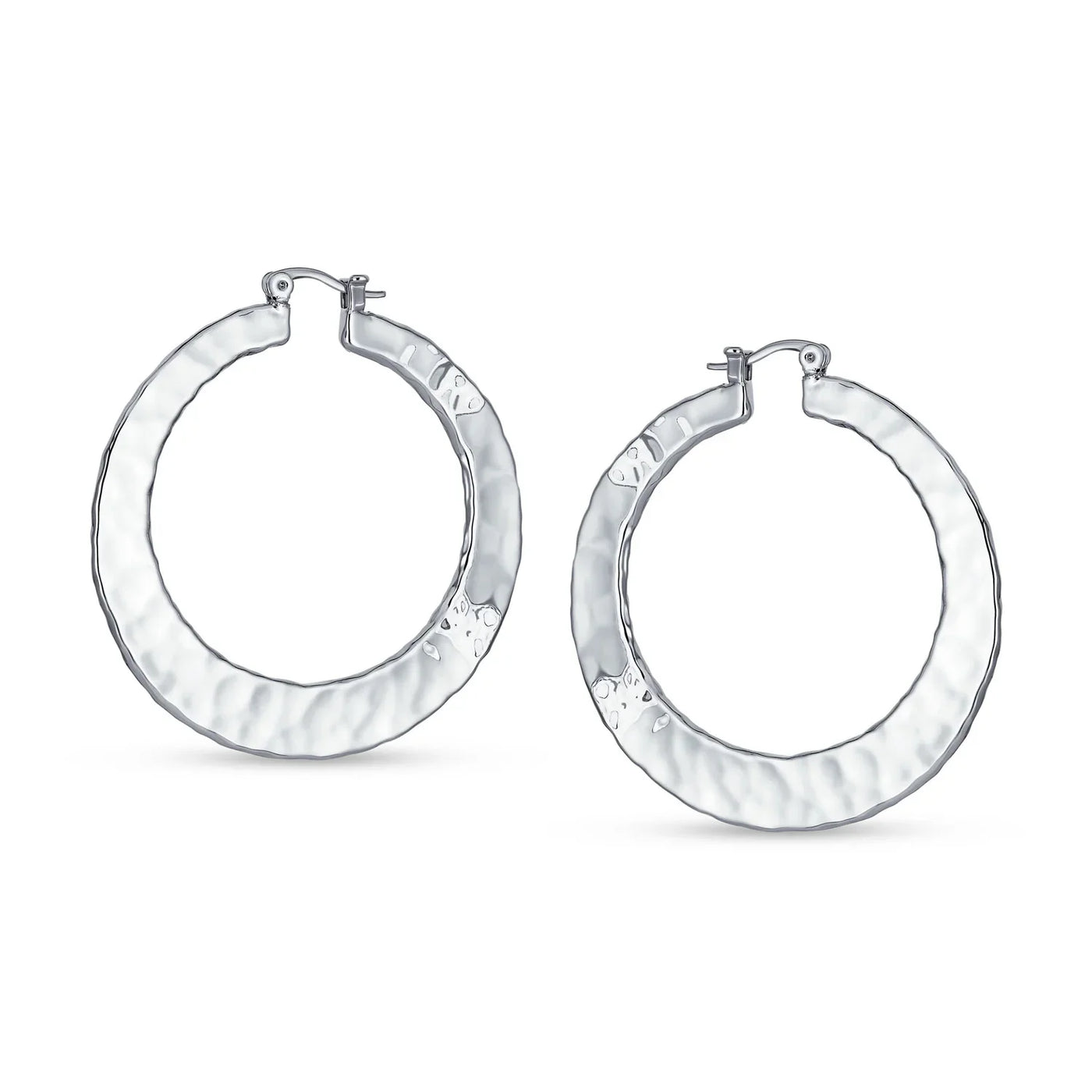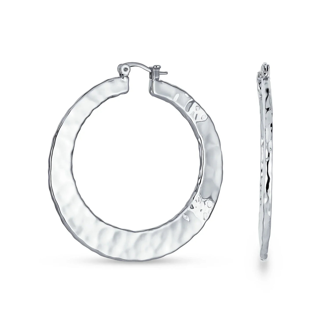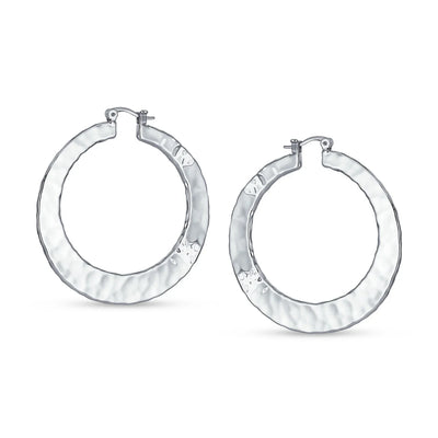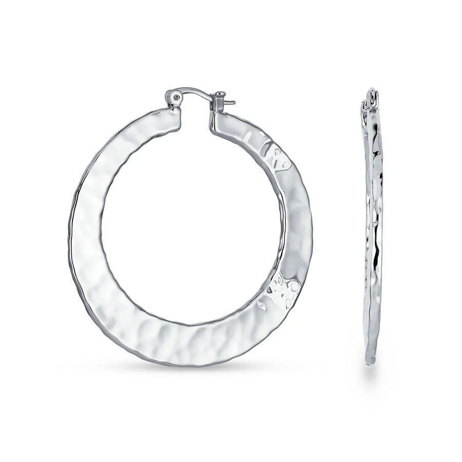 - Discover our latest hammered hoop earrings, perfect for every woman with pierced ears. These flat hoop earrings are feminine and beautiful. Ideal for any occasion, day or night, they add a hint of shimmer effortlessly. A must-have accessory for the fashion-conscious woman this season. Simple elegance at its best. Start your holiday shopping early and order multiple pairs for friends with pierced ears today.
