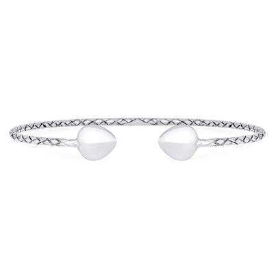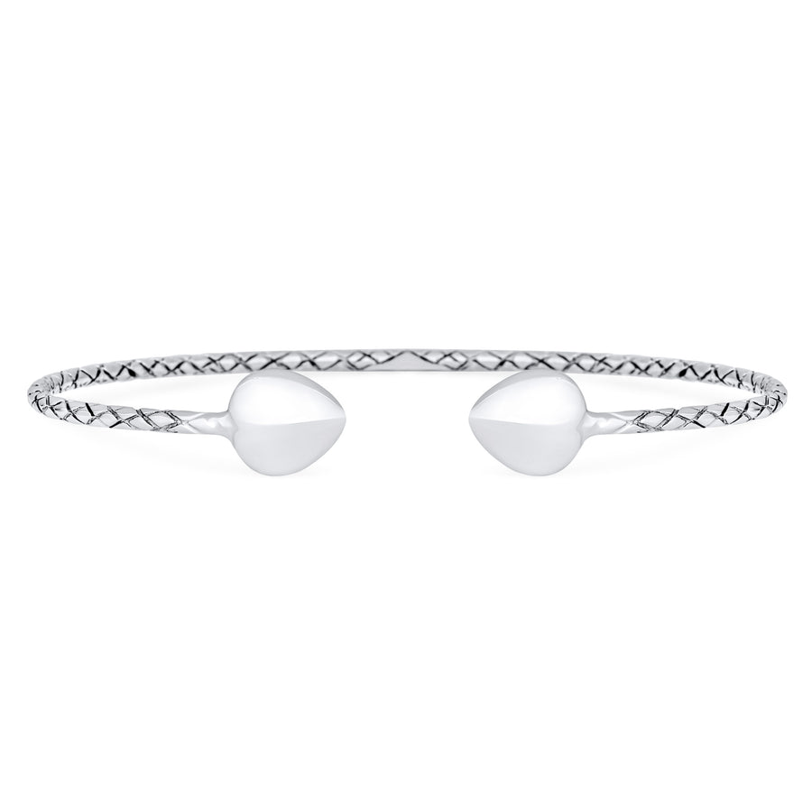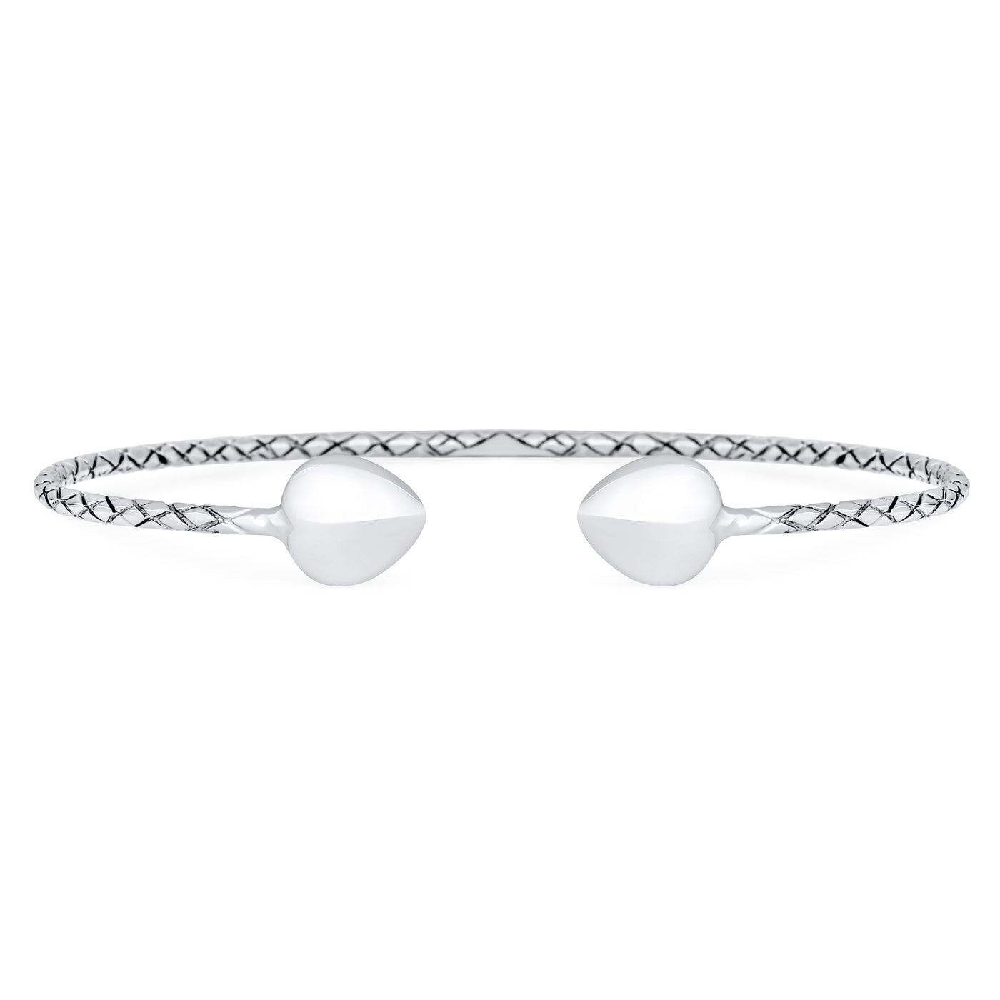 - STUNNING DESIGN - Delight your sweetheart in your life with this beautifully designed West Indian style womens bangle bracelet. Highlighted by two delicate hearts on either end with striking, etched detail crated entirely of gleaming .925 sterling silver.