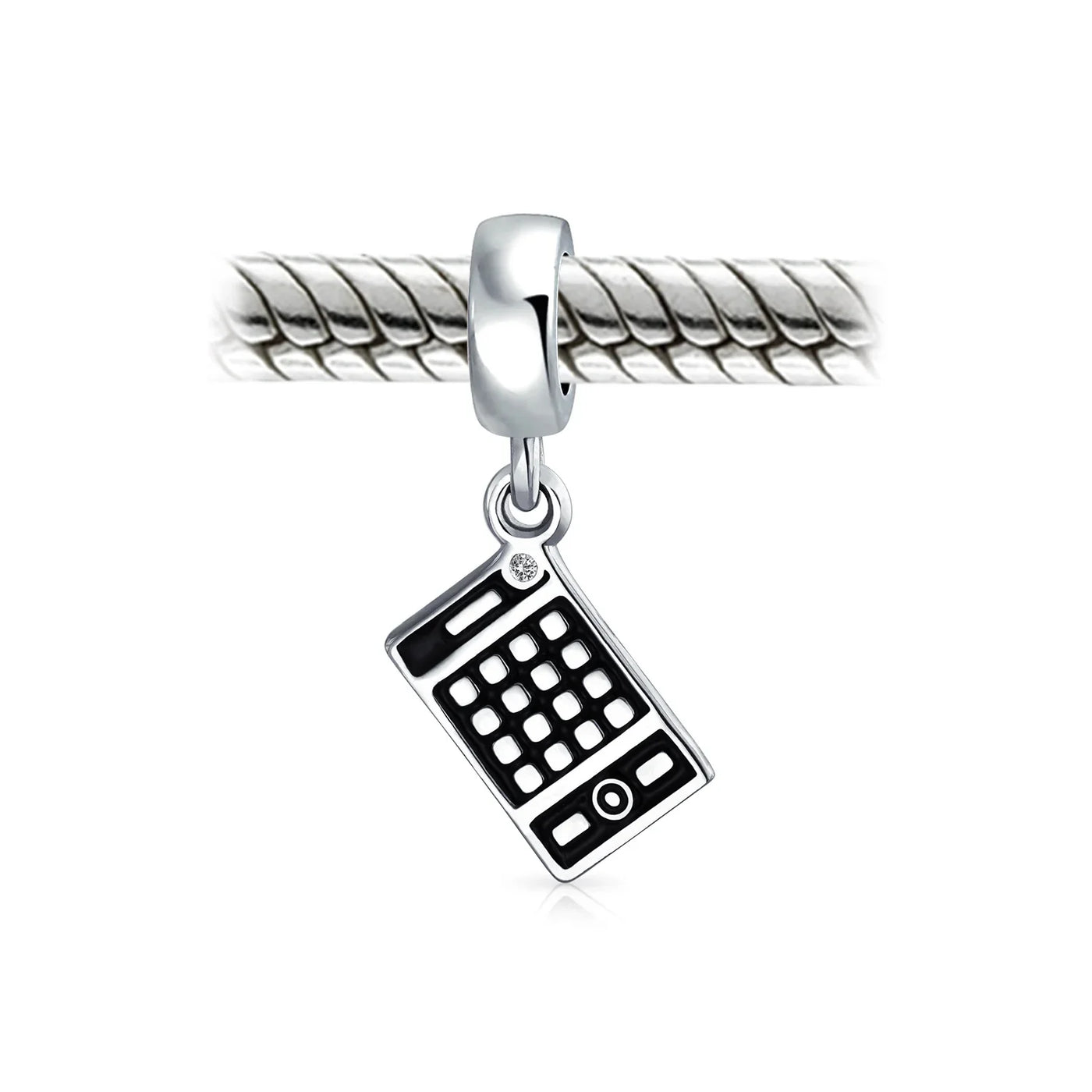 - For a geek chic look, choose this Sterling Silver enamel charm. Featuring a calculator motif, black enamel, and lustrous silver, it adds nerdy charm to your bead collection.