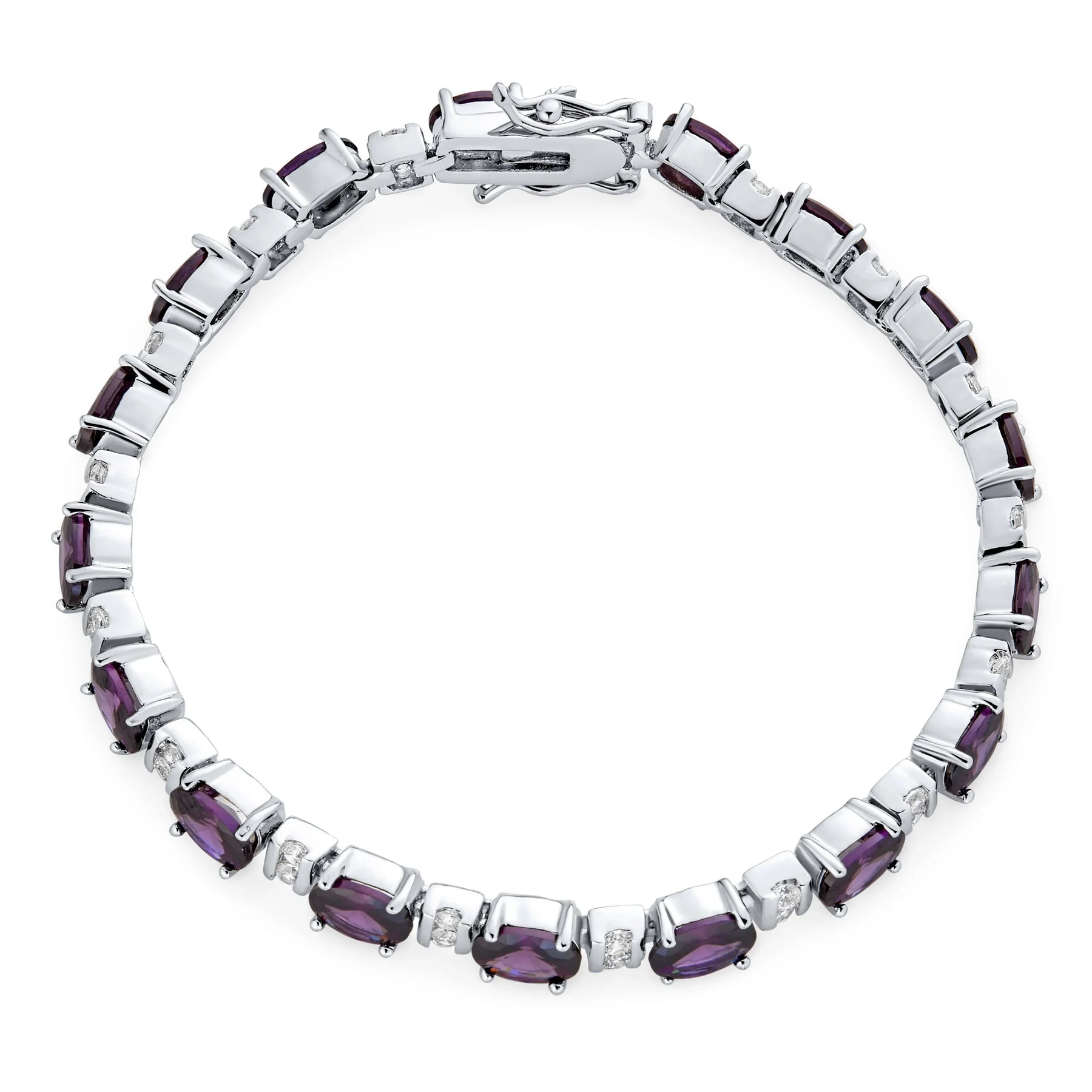 - CLASSIC JEWELRY - Elevate your bridal style with this vintage-inspired tennis bracelet featuring elegant purple CZs and alternating clear stones. The array of small round CZs enhances the simulated amethyst, adding extra dazzle. This bracelet is a must-have accessory and an ideal gift for Valentine's Day or any special occasion.